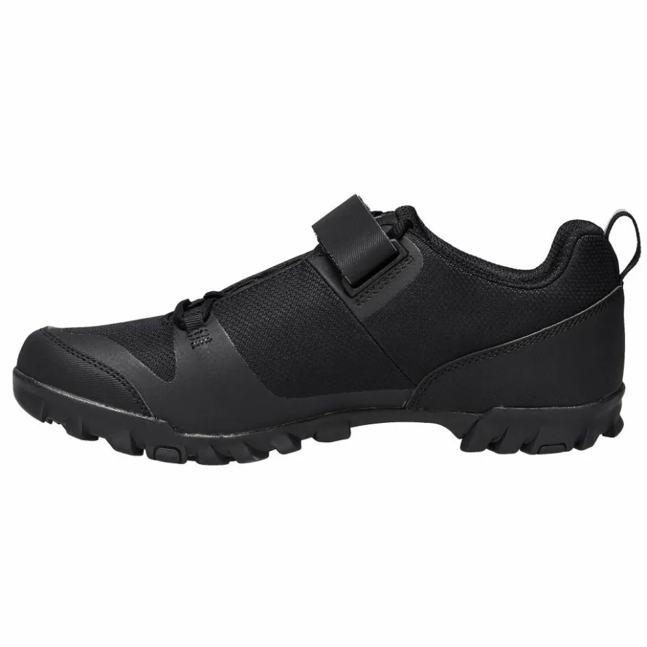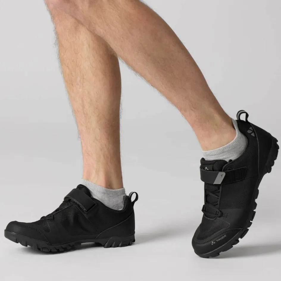 Die Innensohle des Schuhs hat eine Verstärkung in der Pedalzone. Die mittelfeste Außensohle kommt mit einer durchgängigen Nylonverstärkung, die dir hilft, deine Kraft verlustfrei aufs Pedal zu bekommen. Eine profilierte Außensohle zeigt sich bei losem Untergrund griffig. Ideal, wenn du dein Bike mal schiebend bewegen musst.