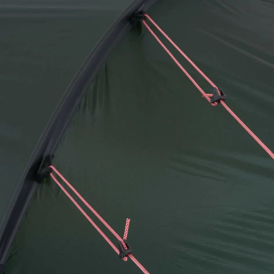 Als Material wird Kerlon 1200 Gewebe verarbeitet, das eine Weiterreißfestigkeit von 12 kg besitzt. Das Gestänge ist 9 mm dick und somit für normale Schneefälle und starke Herbststürme ausreichend gewappnet. Das Außenzelt reicht bis zum Boden, damit kein Schnee zwischen Innen- und Außenzelt geweht werden kann. Mindestens ein hoch angebrachter Lüfter lässt die Luft im Zelt gut zirkulieren.