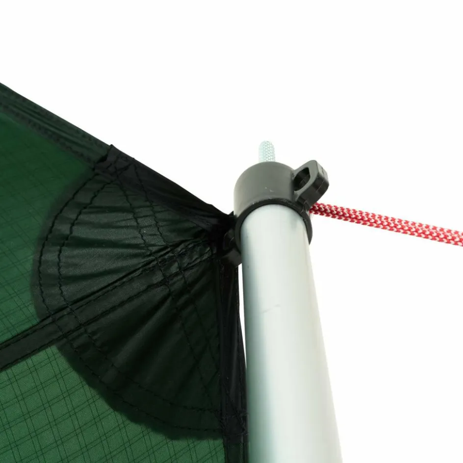 Das 70D Ripstop–Nylon besitzt eine Weiterreißfestigkeit von 25 kg und ist damit das robusteste Tarp in unserem Sortiment. Mit 350 x 290 cm kannst du es als vielseitige Übernachtungsmöglichkeit nutzen, aber auch als erweitertes Vorzelt. Es bietet dir dabei Schutz vor Wind, Regen und Schnee und kann an Bäumen oder mit Tarpstangen abgespannt werden.