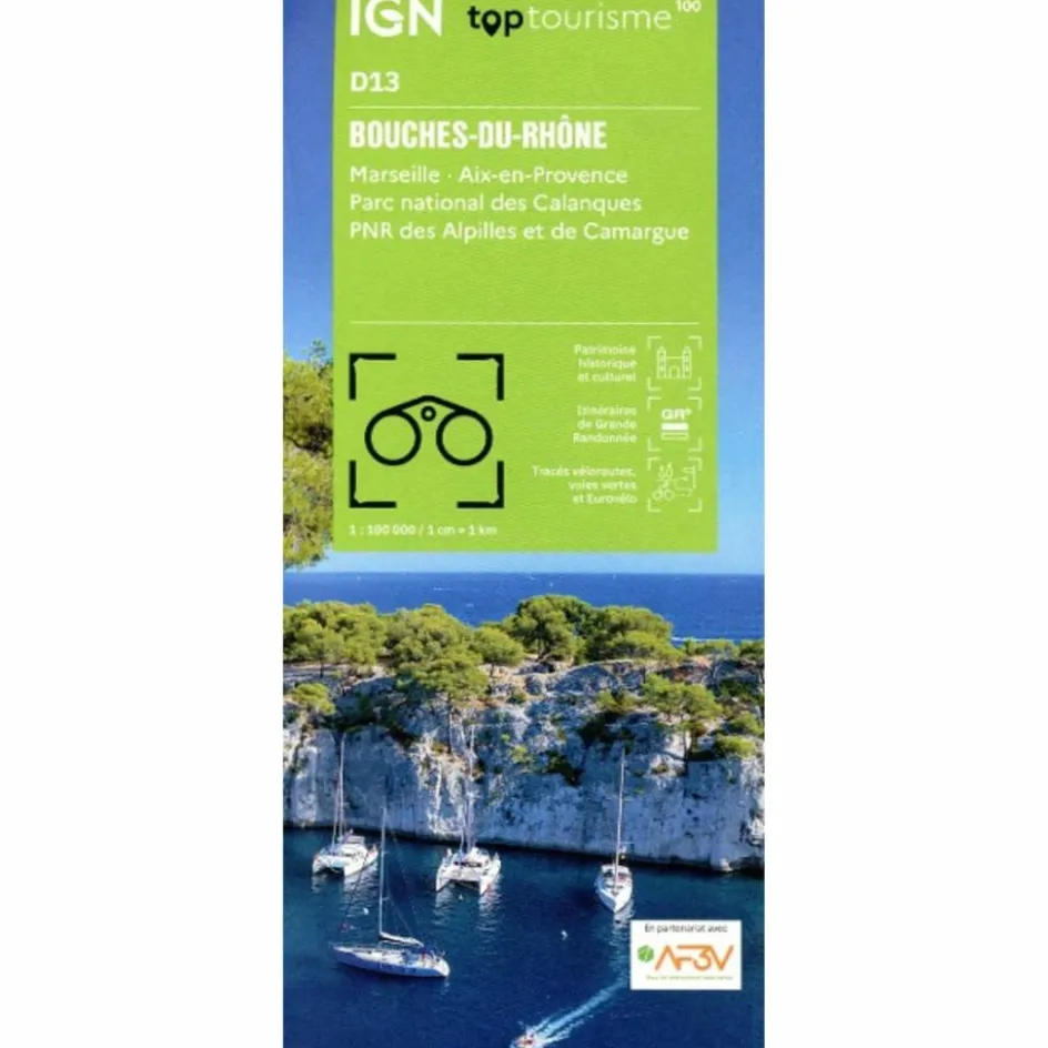 La nouvelle TOP 100 grâce à son échelle au 1:100.000ème (1 cm = 1 km) est la carte idéale pour découvrir une région et faire du tourisme à pied (GR), à vélo ou en voiture, les parcours VELO sont réalisés en partenariat avec l’association AF3V – VéloRoutes et Voies Vertes.
