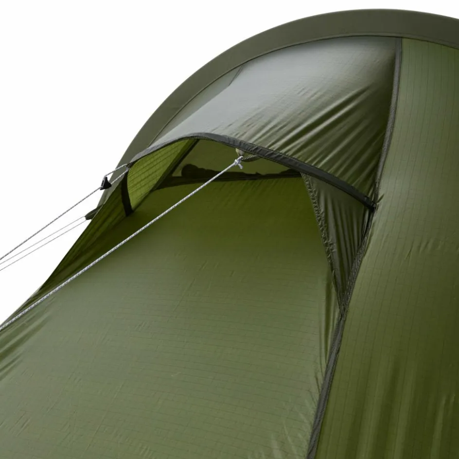 Die großen Lüfter sind hoch angebracht und besitzen ein feinmaschiges Moskitonetz, das selbst kleinste Insekten fernhält. Besonders in warmen Nächten wirst du dich aber über die zusätzliche Belüftungsfunktion der Eingangstür freuen. Sie kann in halb geöffneter Position fixiert werden und sorgt anschließend für maximale Belüftung im Zelt. Eine Auto-Stopp-Funktion verhindert dabei, dass sich der Reißverschluss weiter öffnen kann.