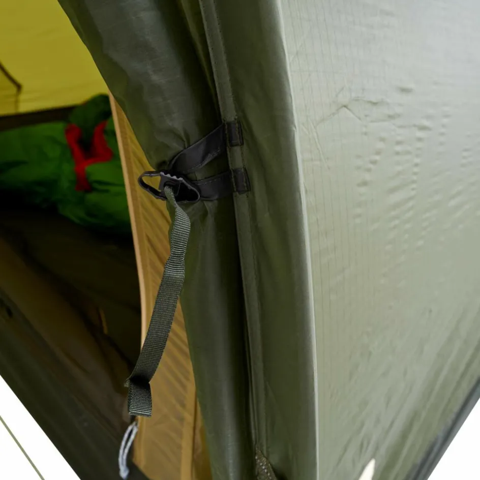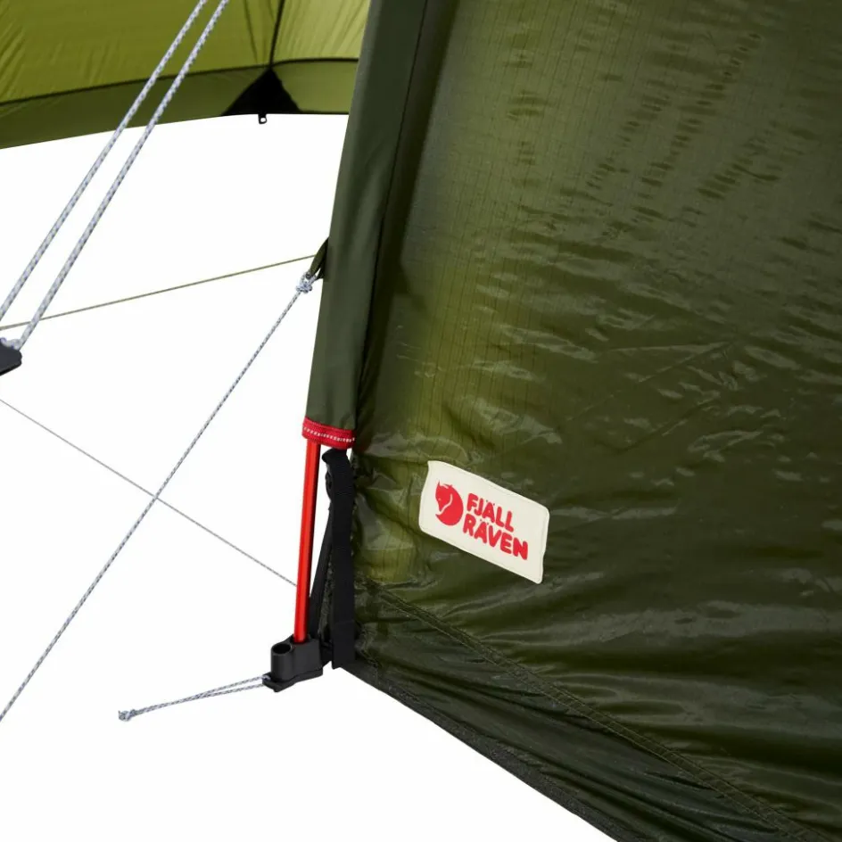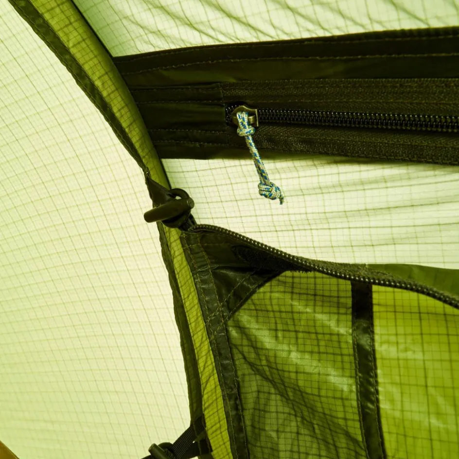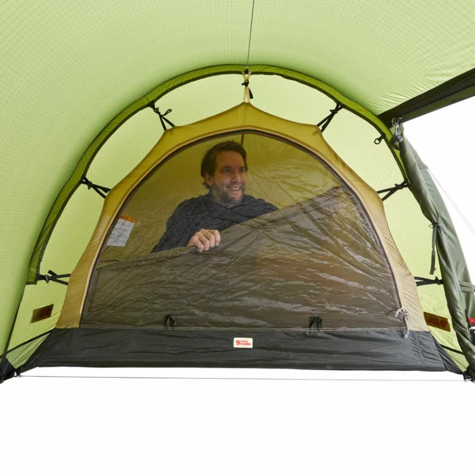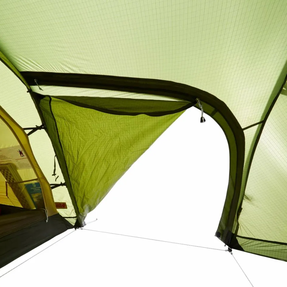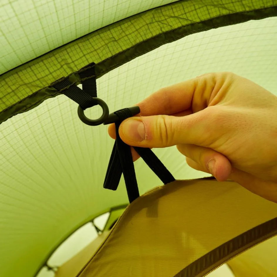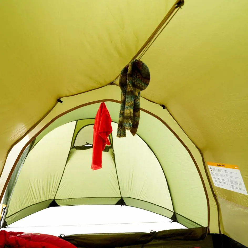 Auch die Details überzeugen. So verfügt das Abisko Endurance über eine Wäscheleine in der Apsis und im Innenraum, auf der du feuchte Ausrüstungsgegenstände über Nacht trocknen kannst. Für Ordnung im Innenzelt sorgen mehrere Netztaschen.