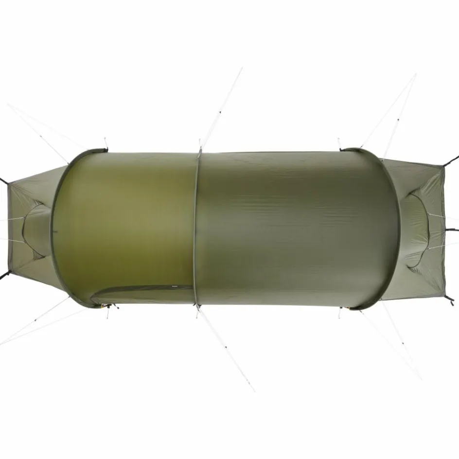 Das Abisko Endurance bietet alles, was man sich von einem Tunnelzelt wünschen kann. Eine große Apsis mit viel Stauraum für Gepäck und ausreichend Platz bei schlechtem Wetter, eine angenehme Höhe im Innenzelt und ein geringes Gewicht und Packvolumen.