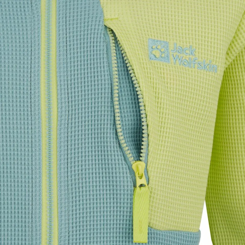 Die Fleecejacke ist durch ihre flinke Feuchtigkeitsleitung und das schnelltrocknende Material ideal für deine aktiven Sprösslinge bei Sportveranstaltungen oder Outdoor-Einsätzen. Gemeinsam schaffen das atmungsaktive Gewebe und die Waffelstruktur ein angenehmes Trageklima, wenn es körperlich zur Sache geht.