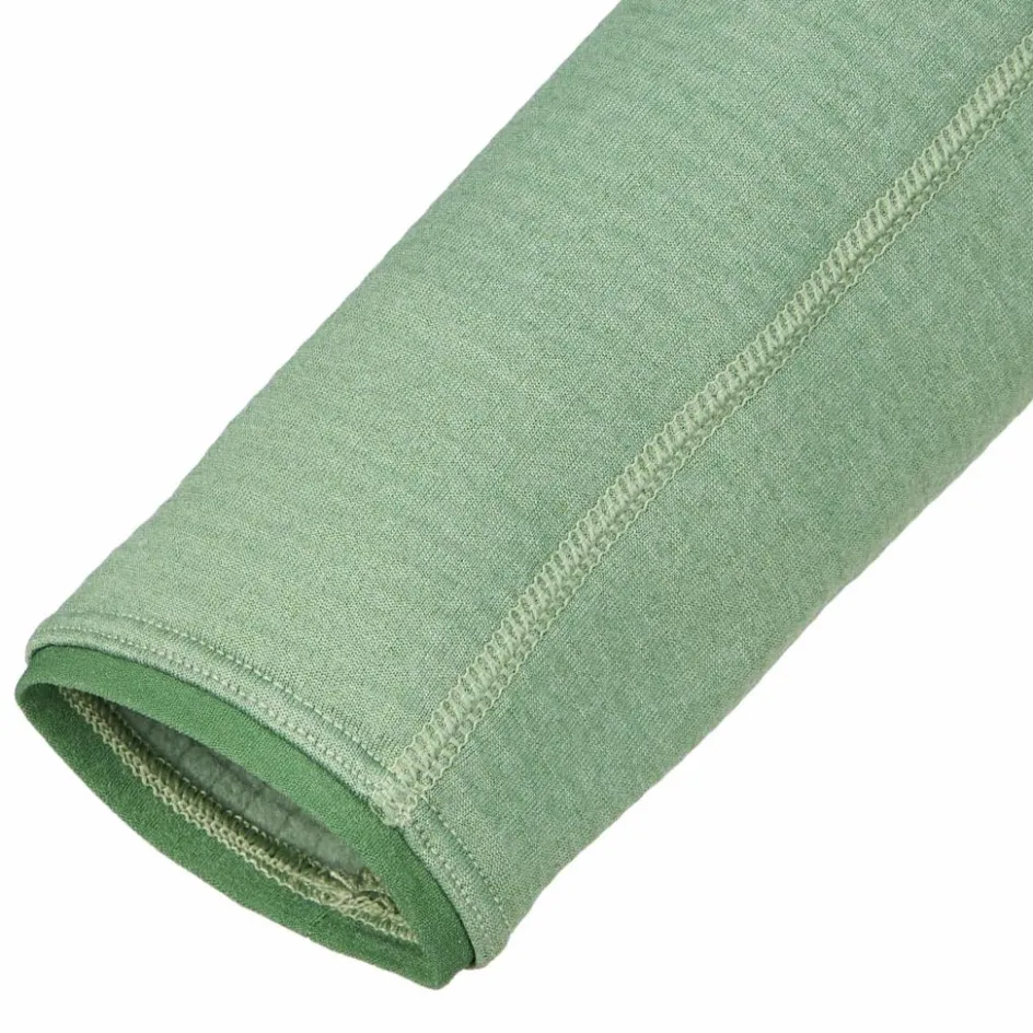 Außen ist das verwendete Grid-Fleece-Material glatt und weich, innen sorgt eine Waffelstruktur für ein sehr gutes Wärme-Gewichtsverhältnis und einen schnellen Abtransport von Körperfeuchtigkeit. Das elastische Material passt sich allen deinen Bewegungen an. Perfekt, wenn es im Eis oder am Fels richtig anstrengend wird.