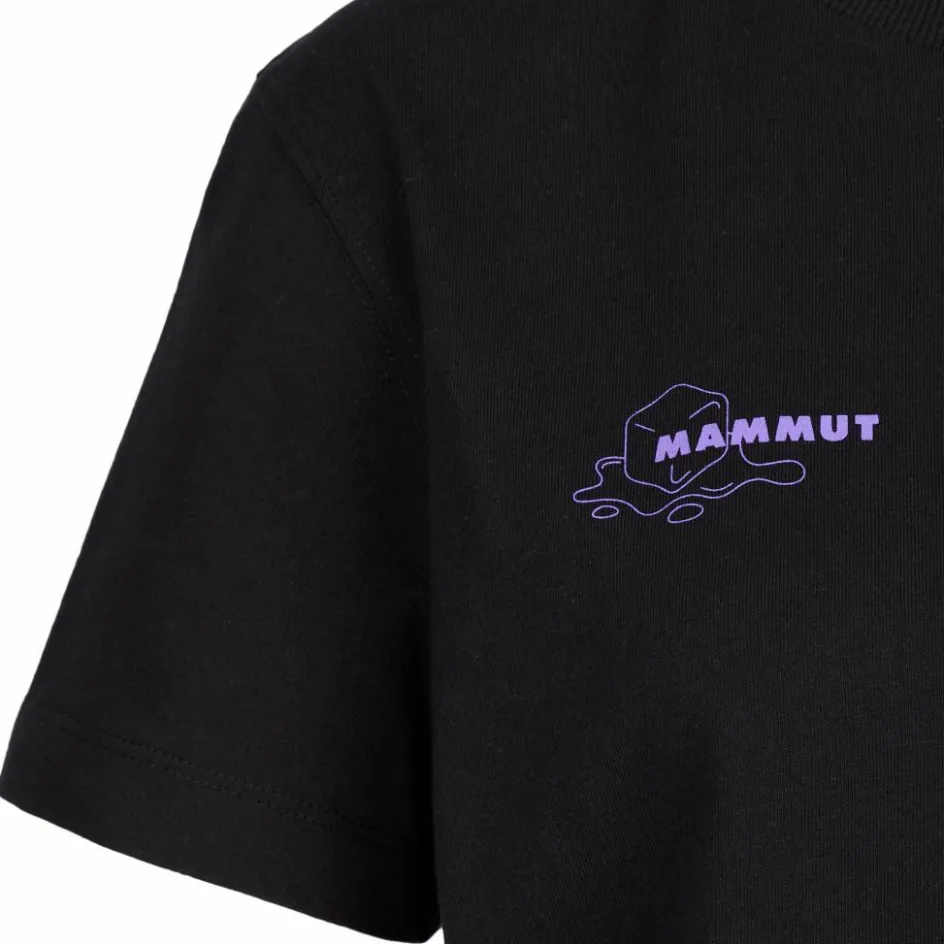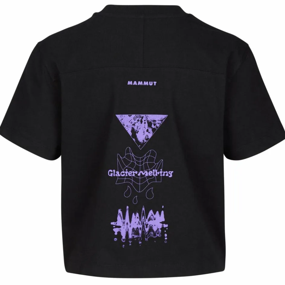Das Mammut Base Cropped T-Shirt Women Glacier kommt im kurzen, lockeren Cropped-Schnitt daher. Am Rücken ziert ein großer Print mit ernsthafter Botschaft das Baumwoll-Shirt.