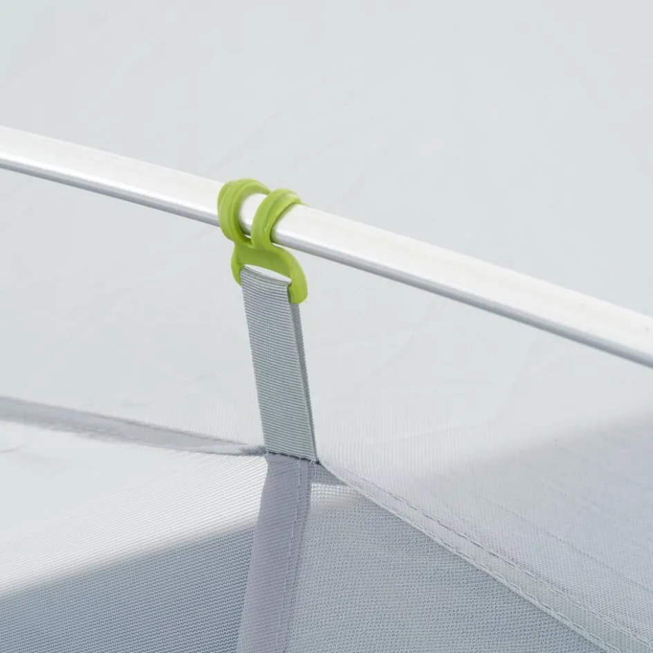 Das Innenzelt besteht lediglich in der oberen Hälfte aus Moskitonetz. Die untere Hälfte aus Nylon-Material bietet einen leichten Sicht- und Windschutz, wenn du das Innenzelt wie eingangs beschrieben alleinig aufstellst.