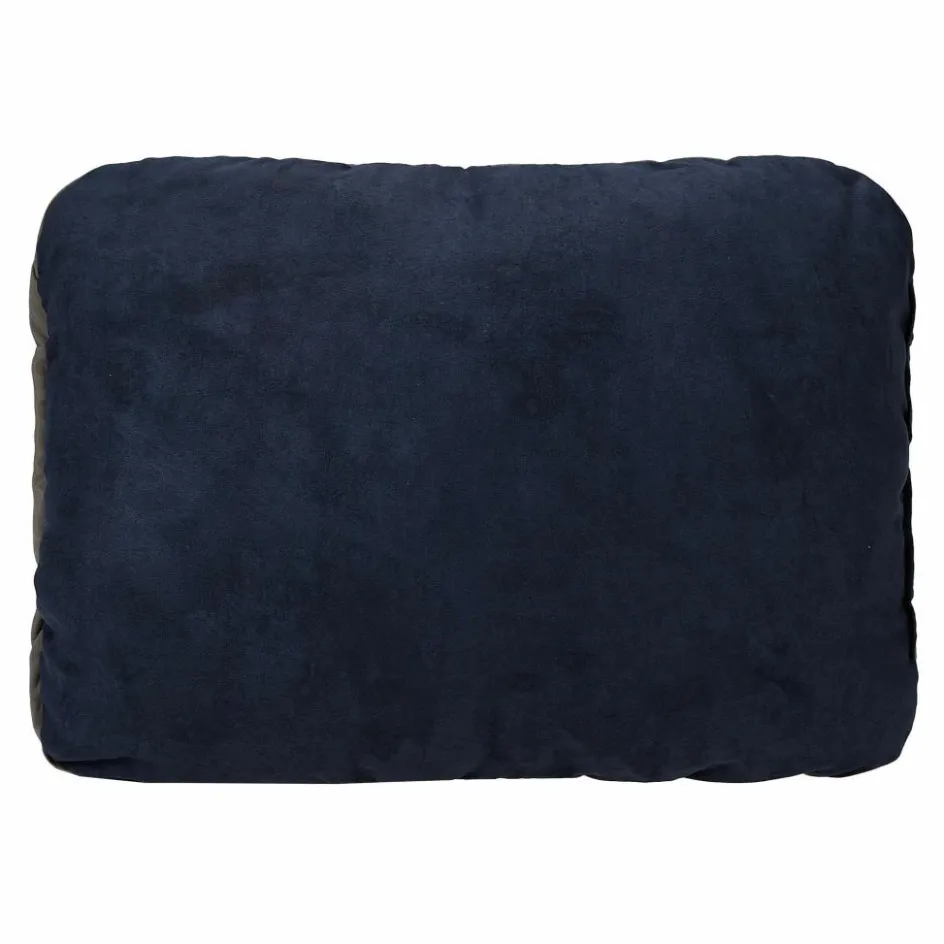 Vollwertiges Kopfkissen für unterwegs. Praktisch: Der Kordelzug auf der Rückseite komprimiert das Kissen so, dass du die Kissenhärte an deine Bedürfnisse anpassen kannst.