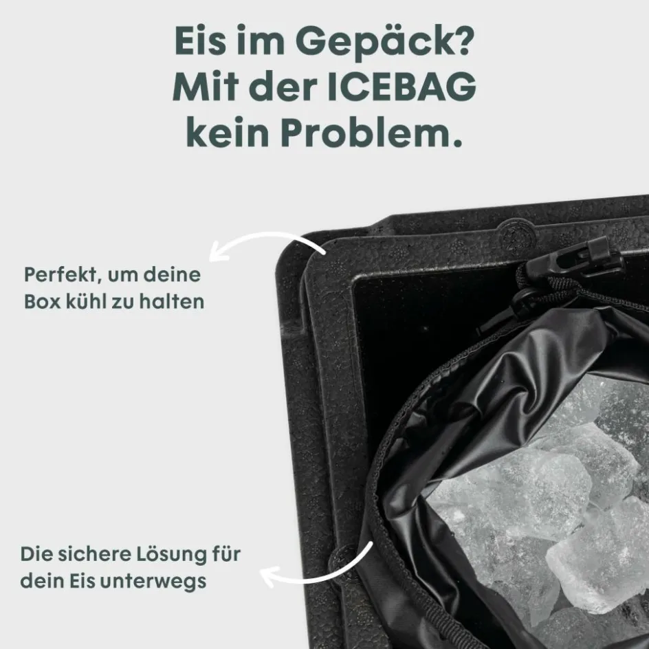 Die Eisakkus können senkrecht in die Box gesteckt werden, um für variable Kühlzonen zu sorgen. So lassen sich Gemüse, Getränke und Grillgut perfekt verstauen. Eiswürfel kannst du in der beiliegenden Ice Bag verstauen. Sie ist wasserdicht und verhindert, dass Schmelzwasser in die Box läuft.