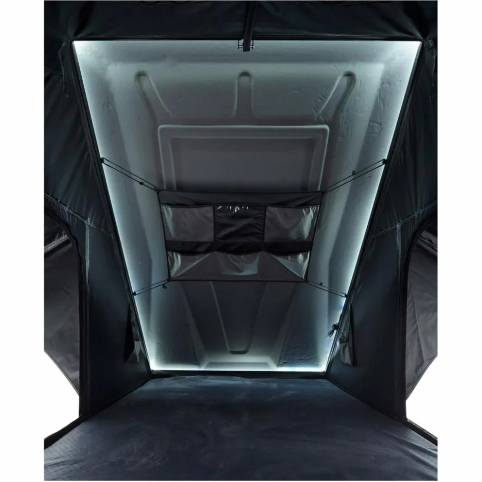 Vor allem dank des wirklich robusten Hartschalenmaterials, hier kommt leichtgewichtiges und dennoch enorm haltbares Aluminium zum Einsatz. Es ist zudem besonders aerodynamisch gestaltet, um den Kraftstoffverbrauch so weit wie möglich zu reduzieren. Damit der Aufbau übrigens auch bei schlechtem Wetter möglichst schnell geht, ist das Zelt mit in Deutschland gefertigten Stabilus-Gasdruckfedern ausgerüstet. So kann auch eine einzelne Person das Zelt innerhalb weniger Sekunden aufrichten.