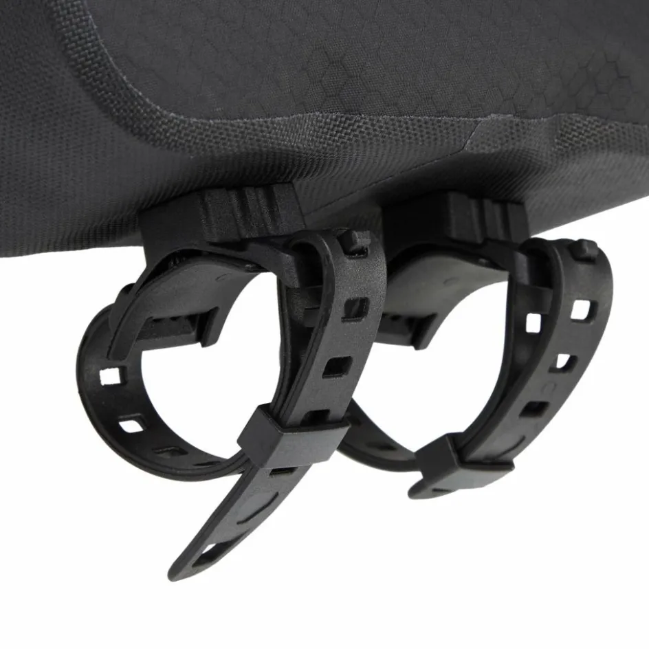 Die Montage der Tasche kannst du per mitgelieferter Lochbänder aus elastischem Material vornehmen; alternativ lässt sich das Fuel-Pack an vorhandenen Rahmengewindebohrungen fixieren.