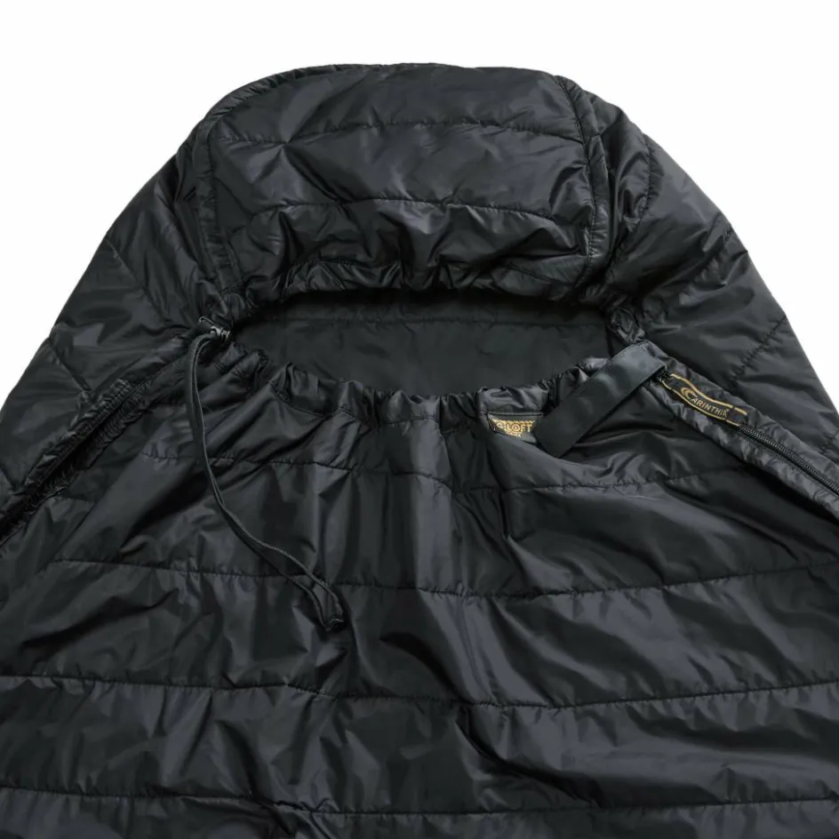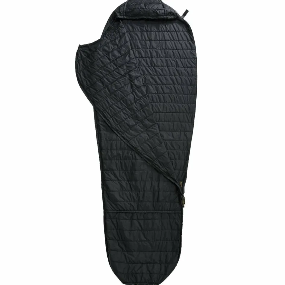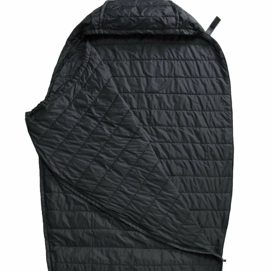 Der integrierte Packsack erlaubt auch das Verkürzen des Liners, indem das überstehende Fußstück in den Packsack gestopft und mit dem Kordelzug zugezogen wird. Dadurch müssen kleinere Personen kein unnötiges Luftvolumen erwärmen.