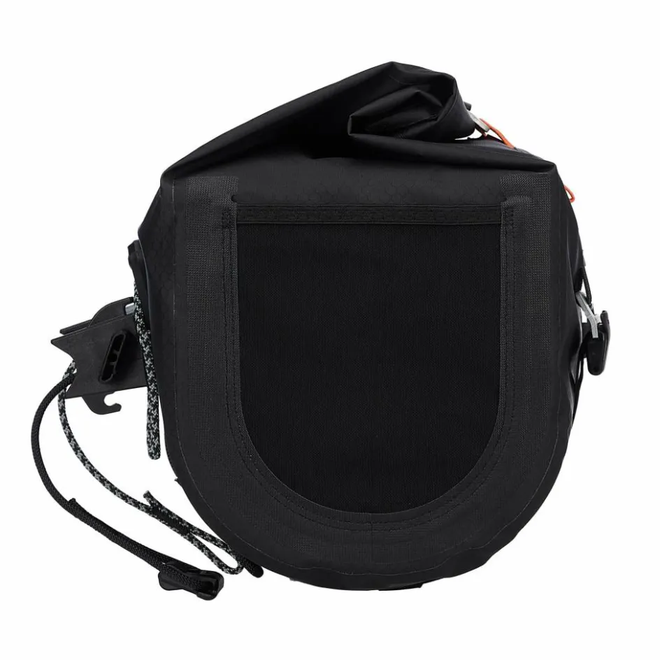 Dank Innenkompression und die durch den Rollverschluss variable Höhe wird das sichere Verstauen deines Equipments begünstigt. Zusätzlich unterstützen zwei Haken mit CamLock-Verschluss auf der Vorderseite die Komprimierung – und nehmen in Kombination mit Riemen zusätzliche Ausrüstung auf. Seitliche Steckfächer lassen sich für Riegel und Co. benutzen, an die du während der Fahrt einfach herankommst.