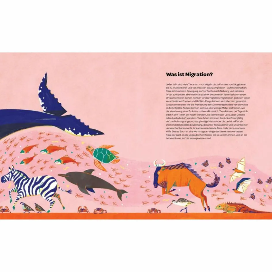 Basierend auf den neuesten wissenschaftlichen Erkenntnissen verbindet das Buch faszinierende Fakten mit eindrucksvollen Beobachtungen und erzählt von einzigartigen Tierarten auf unserem Planeten und ihren erstaunlichen Reisen. Dabei vermittelt es anschaulich, wie Nahrungsketten, Lebensräume und Lebenszyklen zusammenhängen – und macht die Welt der Migration lebendig und greifbar.