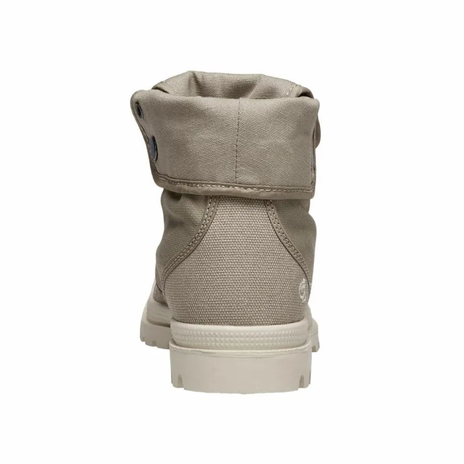 Denn dieser bietet dir gleich mehrere Vorteile. Hoch geklappt und geschnürt bietet der Stiefel besseren Schutz. Für Wanderungen in der Savanne oder ähnlichen Gefilden, bei denen durchaus noch mit trockenen, häufig mit Dornen besetztem Gestrüpp zu rechnen ist, ist das ideal. Wird das Gelände trockener und sandiger, aber auch im urbanen Raum, kannst du den Schaft herunterklappen und mittels Druckknöpfen fixieren.