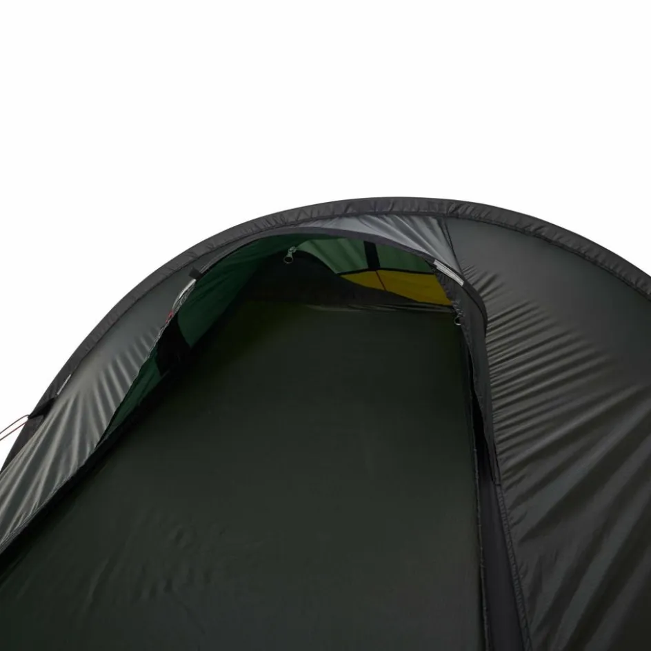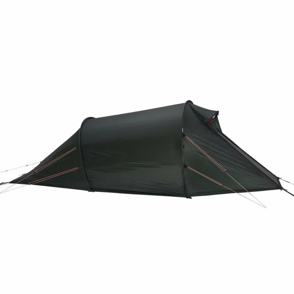 Tunnelzelt für drei Personen. Die abfallende Konstruktion und die perfekt abgestimmte Materialauswahl, macht es zu einem leichten und dennoch ganzjährig einsetzbarem Zelt.