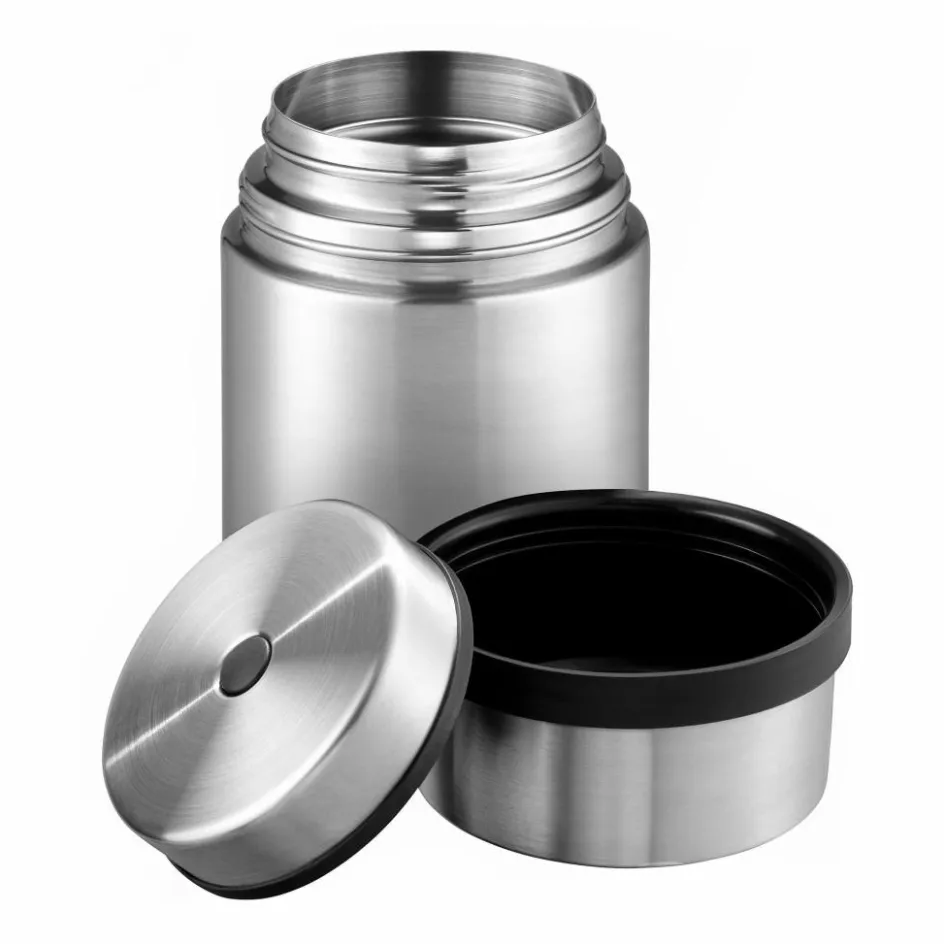 Eleganter Thermobehälter aus 18/8 Edelstahl mit Deckel, der als Schale genutzt werden kann. In ihm kannst du die heiße Suppe ebenso transportieren, wie das Eis an heißen Sommertagen.