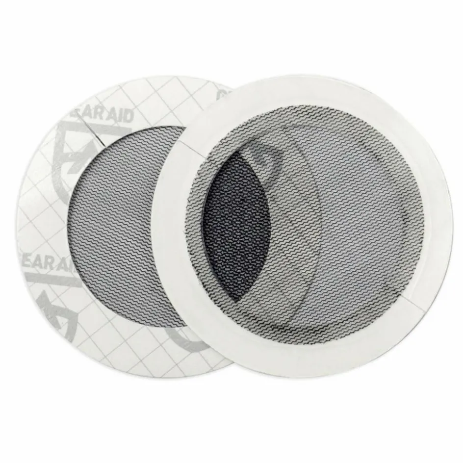 Loch im Moskitonetz? Das Reparaturkit von Mc Nett enthält zwei schwarze Flicken mit 6,3 cm Ø und zwei Befestigungskleberinge, mit denen du entstandene Löcher schnell und leicht reparieren kannst.