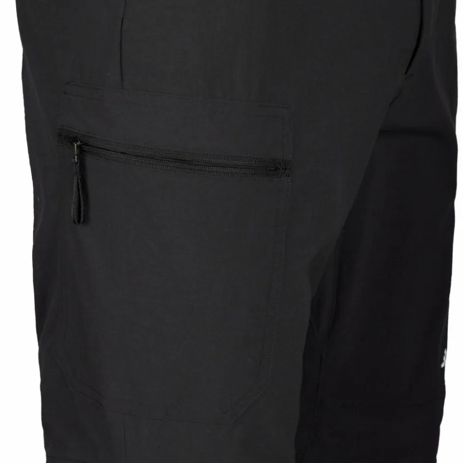 Die Hose besteht aus einem sommerlich leichten Kunstfaser-Mix. Dieser leitet entstehende Körperfeuchtigkeit schnell nach außen hin ab und trocknet ebenso fix wieder. So hast du auch auf anstrengenden Etappen beim Wandern oder Trekking schnell wieder ein angenehm trockenes Gefühl auf der Haut. Dank ihres hohen Polyamid-Anteils ist die Hose sehr robust und kann auch im rauen Gelände, zum Beispiel am Klettersteig, eingesetzt werden. Durch den Elasthan-Anteil ist die Hose stark dehnbar und macht auch ausladende Bewegungen problemlos mit.