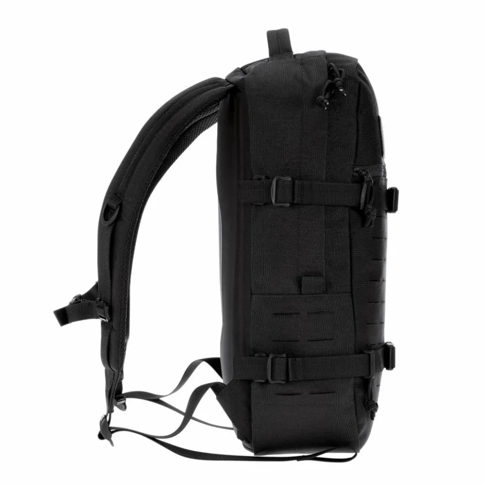 Die lasergeschnitten MOLLE-Laschen auf der Außenseite fügen sich unauffällig in den Stoff des Rucksacks ein. Mittels diverser, separat erhältlicher MOLLE-Taschen kannst du den Rucksack im Volumen erweitern und nach deinen Vorlieben gestalten. Die MOLLE-Klettlaschen im Hauptfach ermöglichen dir das Anbringen verschiedener Innentaschen.