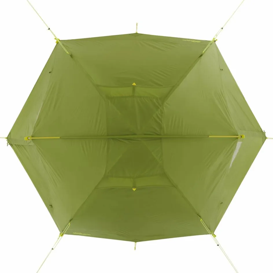 Der Aufbau gestaltet sich denkbar einfach. Nachdem das Innenzelt einfach an das Gestänge geclipt wird, wird das Außenzelt übergeworfen. Dank dieser Konstruktion hast du sogar die Möglichkeit, das Außenzelt in tropischen Nächten komplett wegzulassen. Zudem kann das Zelt mit nur zwei Heringen aufgestellt werden, sodass du bei der Zeltplatzwahl beispielsweise beim Paddeln an felsigen Ufern etwas flexibler bist.