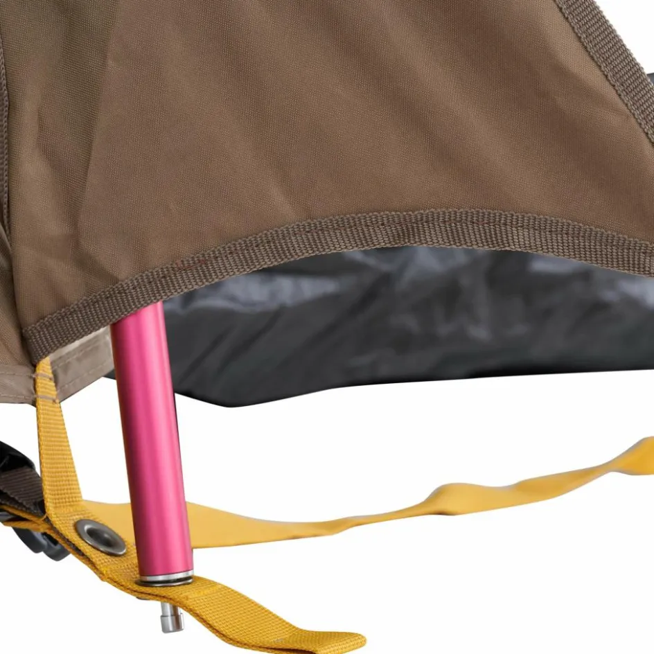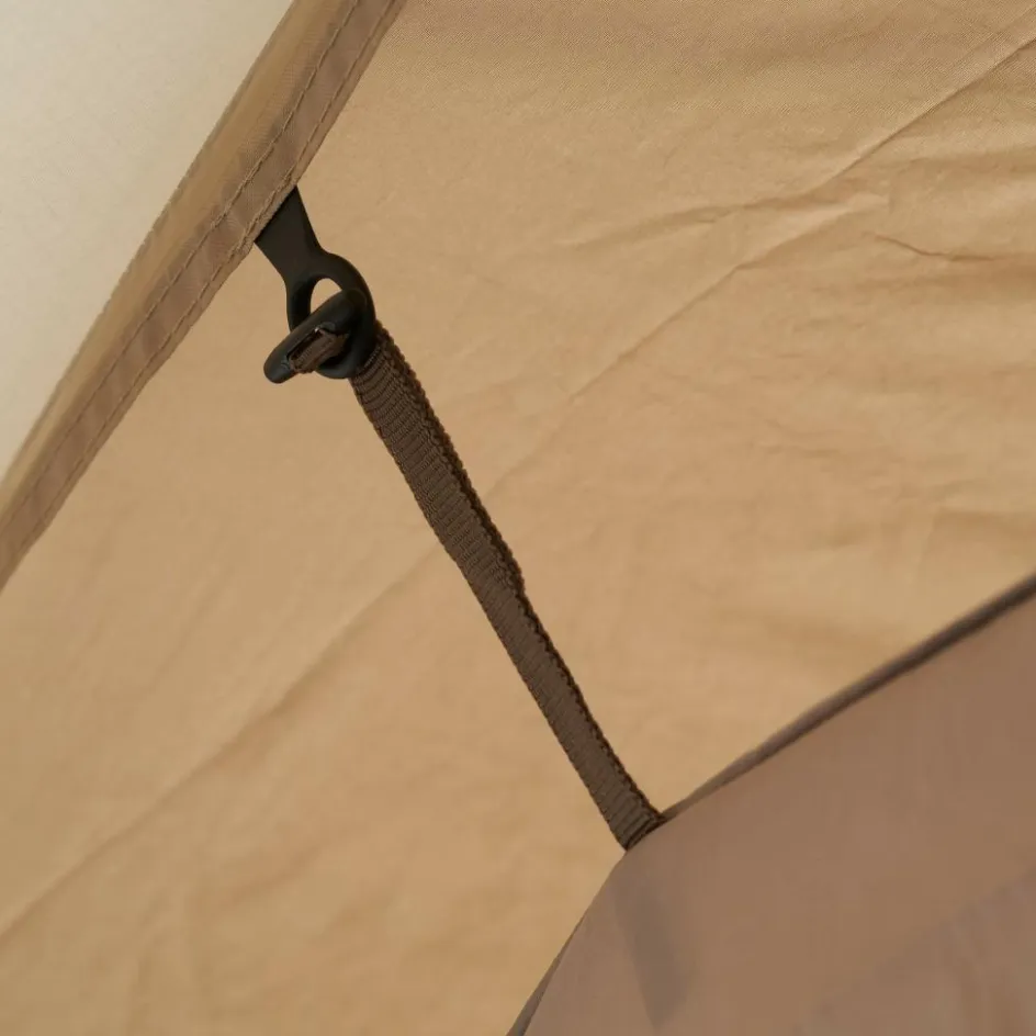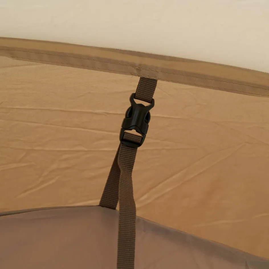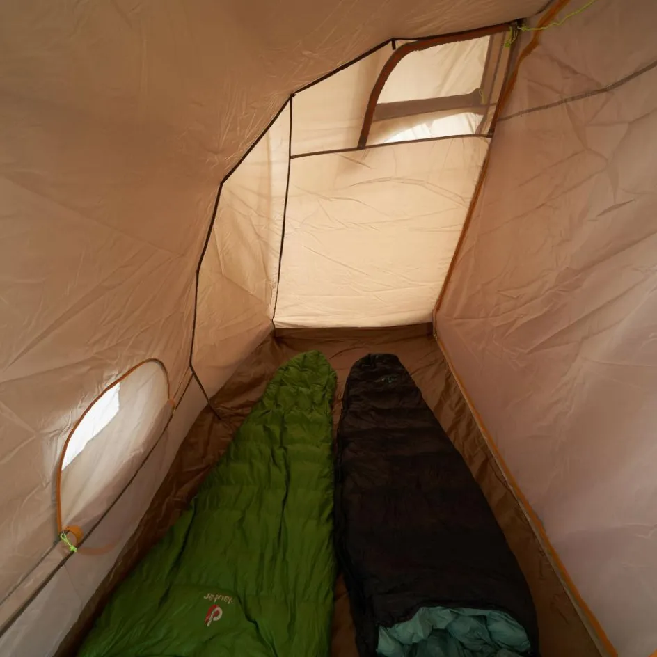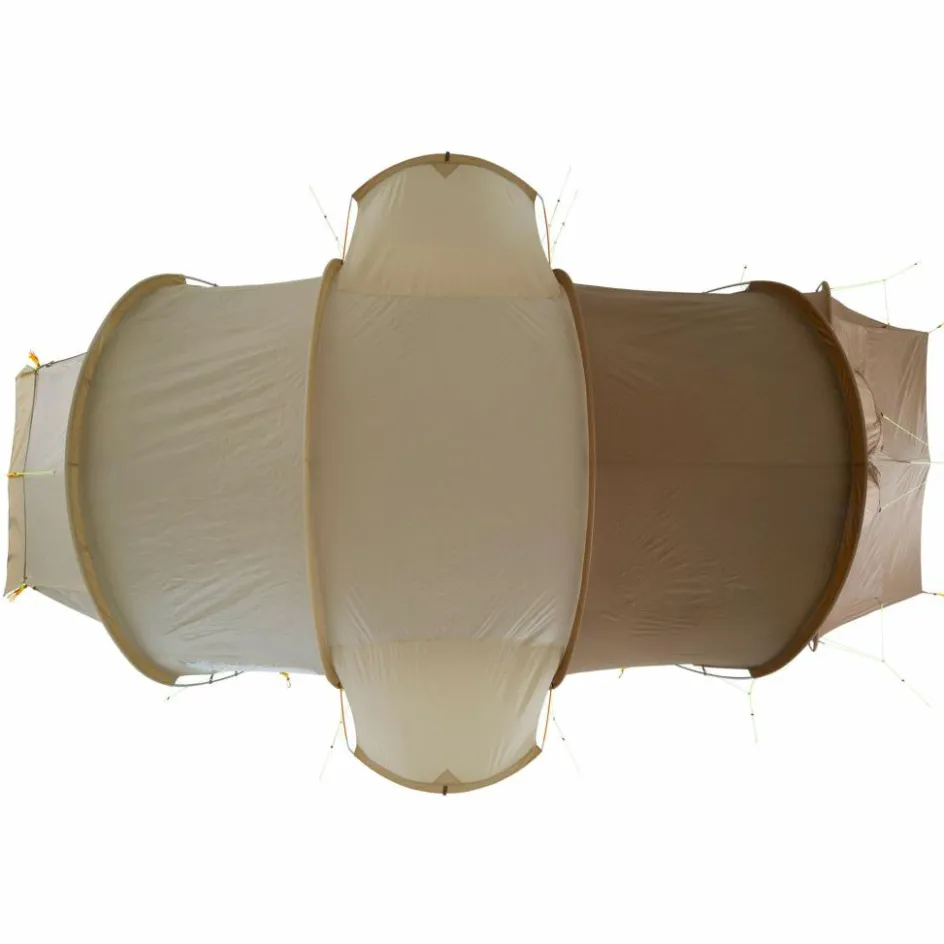 Beide Zeltkabinen können bei Bedarf entfernt werden. Die große Kabine kann außerdem durch eine Trennwand unterteilt werden. Diese dient auch als Außenwand, wenn du eine Hälfte mittels Reißverschluss abtrennst und aufgerollt verstaust. Die dadurch entstandene T-förmige Apsis bietet noch mehr Platz für einen angenehmen Urlaub.