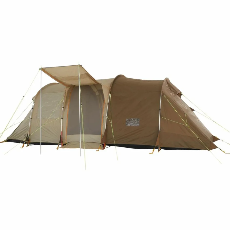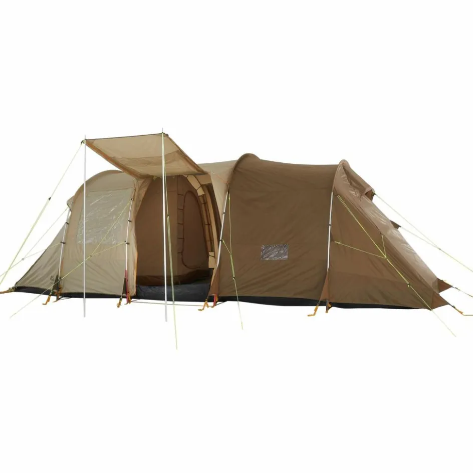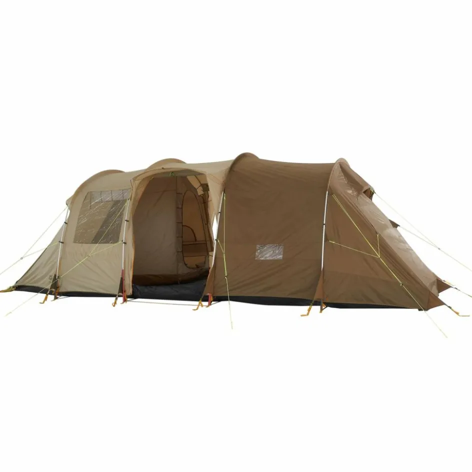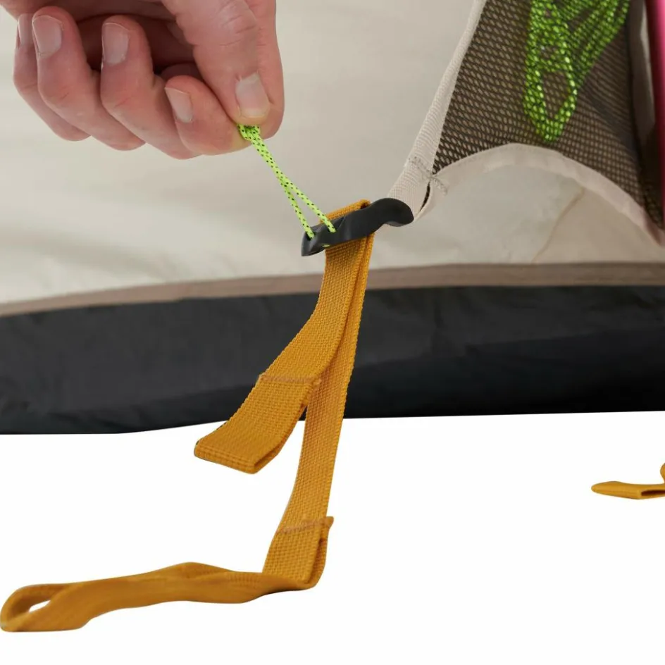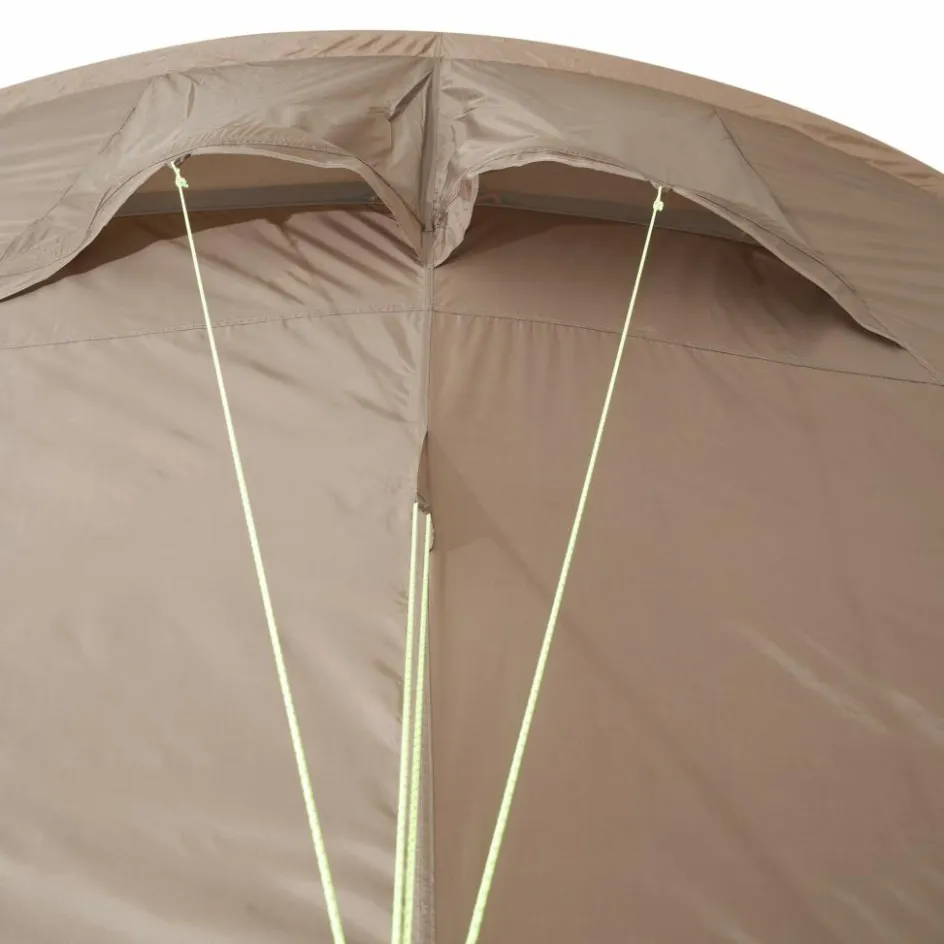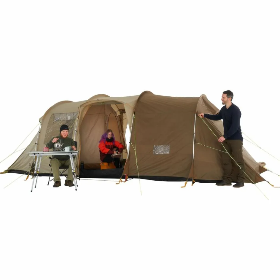 Mit dem Travel Lodge RT kannst du eine befreundete Familie gleich mit in den Urlaub nehmen. Denn das Zelt bietet 5-7 Personen und deren Gepäck ausreichend Platz zur Erholung. Trotz der Größe ist das Familienzelt selbst zu zweit zügig aufgebaut und abgespannt. Zugang erhältst du über die beiden Seiteneingänge oder den Fronteingang. Alle drei Eingänge kannst du mit separat erhältlichen Tarpstangen als Sonnensegel aufspannen. Allerdings fällt auch geschlossen genügend Licht ins Zelt. Dafür stehen dir vier große Klarsichtfenster zur Verfügung, die du für mehr Privatsphäre bei Bedarf abdecken kannst.