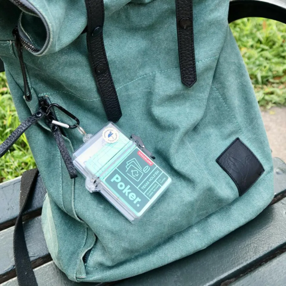 So kannst du das Spiel unkompliziert etwa an deinen Rucksack anhängen und hast es griffbereit, wenn die Runde im Camp am Lagerfeuer beginnen soll. Die wetterfeste Box (nach IPX5) enthält ein Kartenspiel, Pokerchips und eine Anleitung.