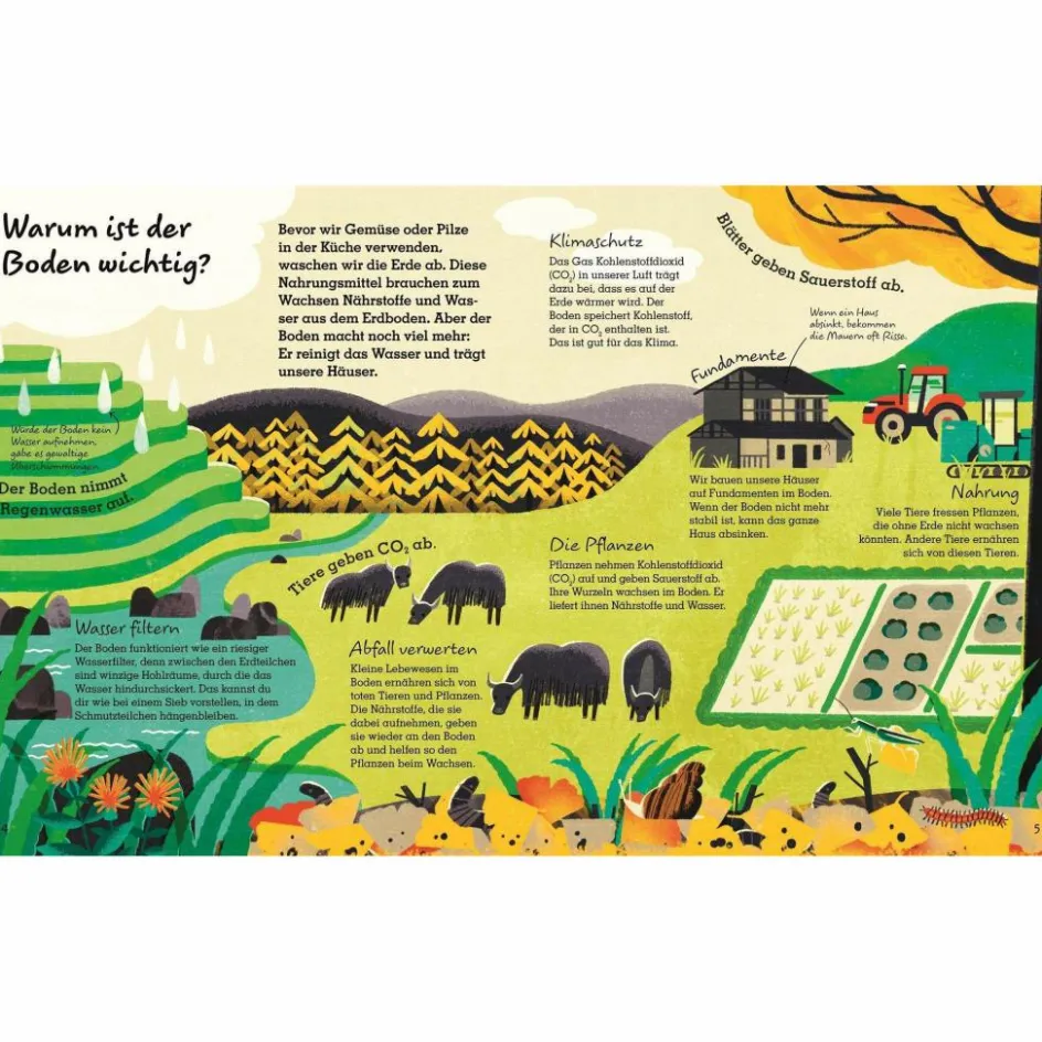 Was verbirgt sich in der geheimnisvollen Welt unter der Erdoberfläche? Mit diesem Kinderbuch reisen Kinder ab 6 Jahren in die Tiefen unterirdischer Gänge & Höhlen. Von Maulwurf & Regenwurm bis zu gigantischen Pilznetzwerken – in farbenfrohen Illustrationen und Fotos entdecken sie die unzähligen Tiere unter der Erde. Dabei lernen sie den Erdboden als wichtige Grundlage für alles Leben auf der Erde kennen und erfahren, welche immense Bedeutung er für den Klimawandel hat.