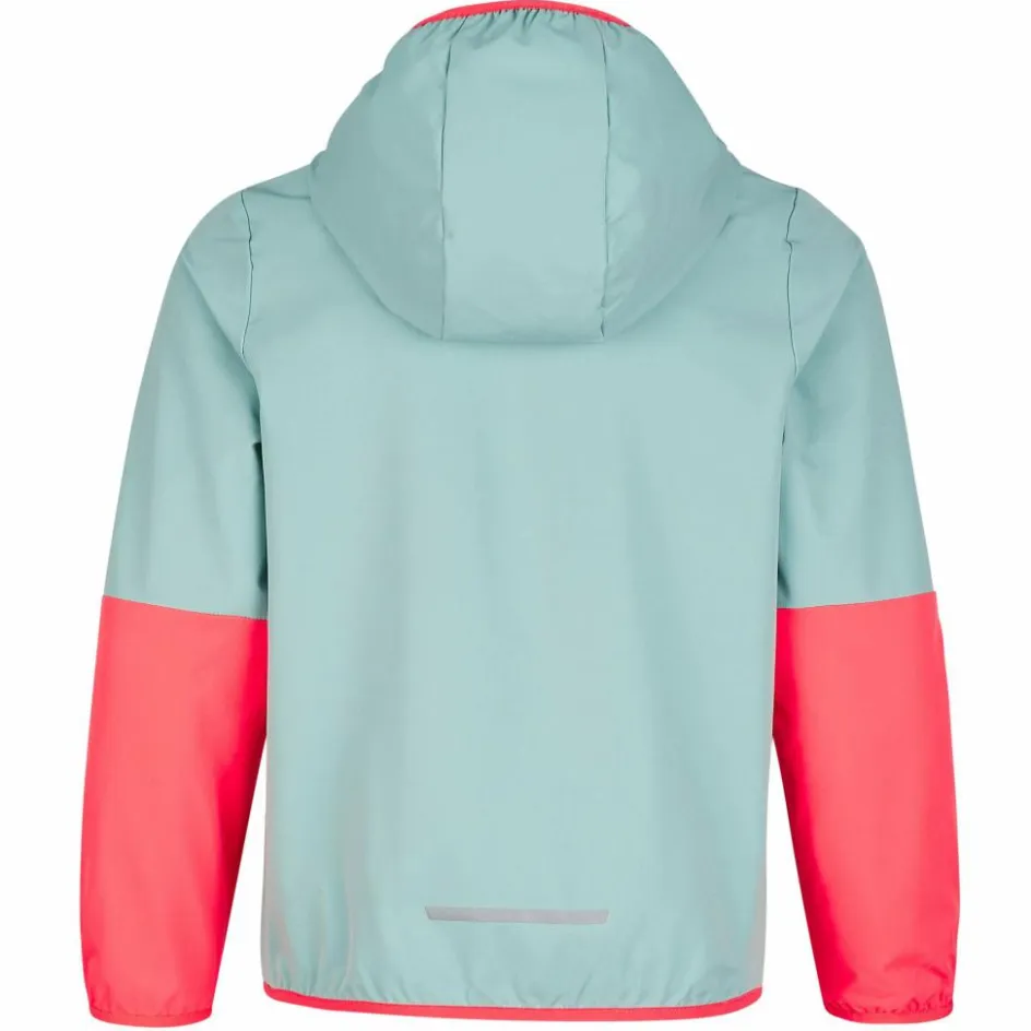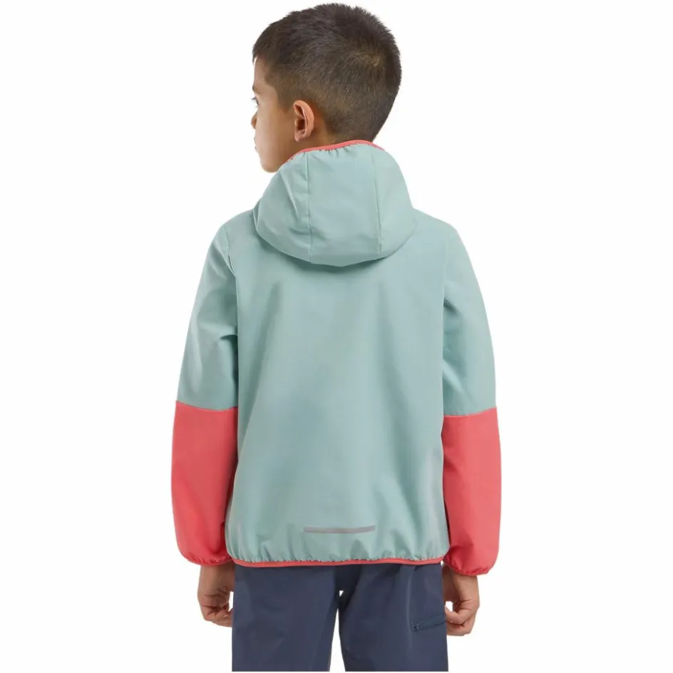 Dank der Elastikeinfassungen in Kapuze und Ärmelbündchen bleibt die Jacke beim Toben dort, wo sie sein soll. Extra Schutz vor frischem Wind bieten der unterlegte Front-RV und der hohe Kragen. Für Stauraum sorgen zwei Reißverschlusstaschen und bewahrenkleine Kostbarkeiten sicher auf. Harmonische Farben machen die Softshell auch optisch zu einem echten Highlight.