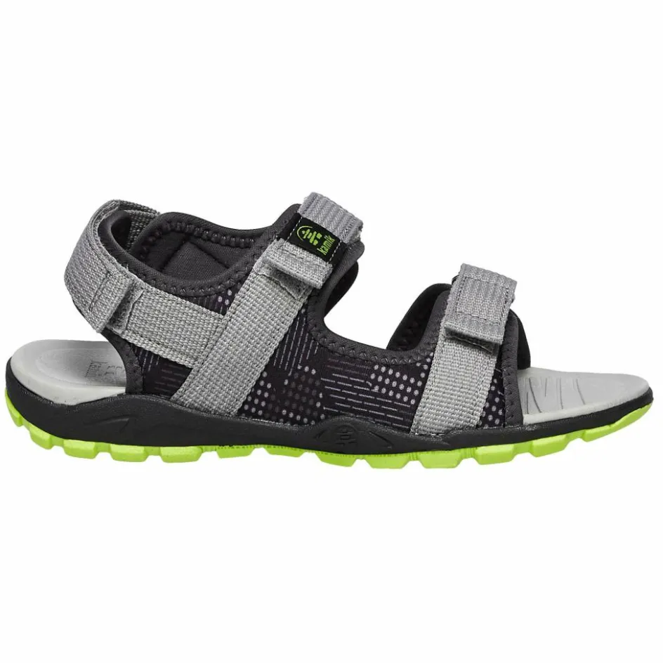 Absolut gelungen und schlicht und ergreifend praktisch. Mit drei regulierbaren Klettriemen, rutschhemmendem Fußbett und griffigem Sohlenprofil.