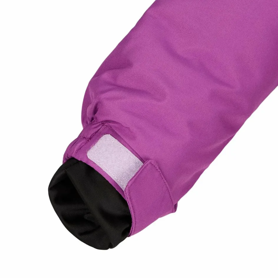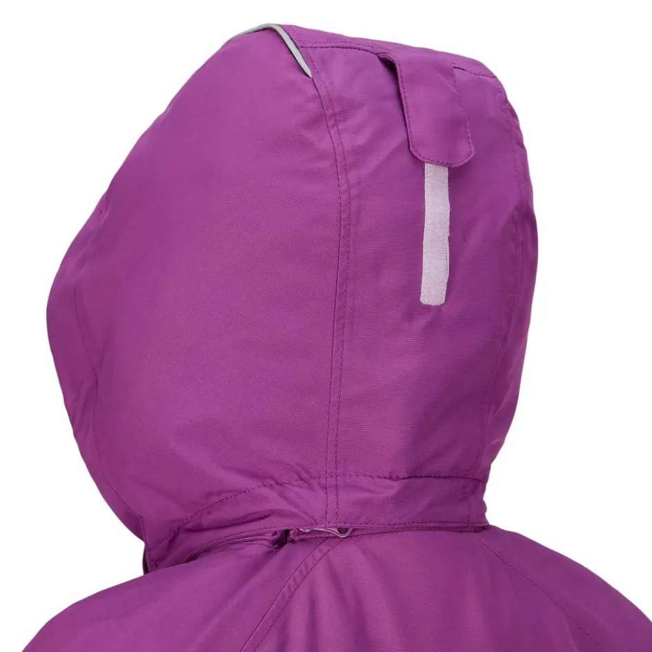 Die Jacke ist mit vielen praktischen Details ausgestattet, die zum unbeschwerten Wintervergnügen beitragen: Die Kapuze sitzt dank elastischem Einsatz und Klettverschlussregulierung am Hinterkopf passgenau am Kopf. Bei sonnigem Winterwetter kann sie aber auch einfach abgetrennt werden. Der Schneefang verhindert, dass aufgewirbelter Schnee in die Jacke gelangen kann. Die Ärmelbündchen sind mit Klettverschlüssen in der Weite regulierbar. Die elastischen Stulpen mit Daumenschlaufen halten die Handrücken warm und verhindern, dass Kälte eindringen kann. Insgesamt sechs Taschen, darunter eine Skipasstasche am Ärmel, bieten reichlich Stauraum für Mütze, Handschuhe und Mohrrüben für die Schneemannnasen.