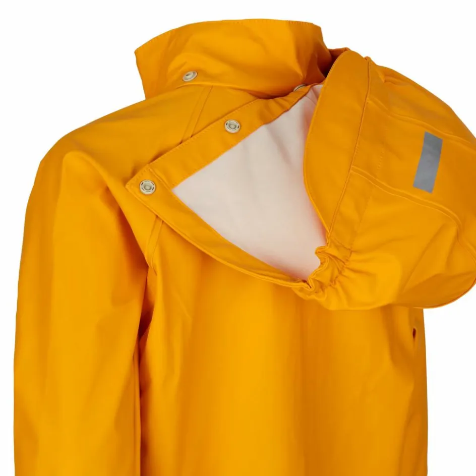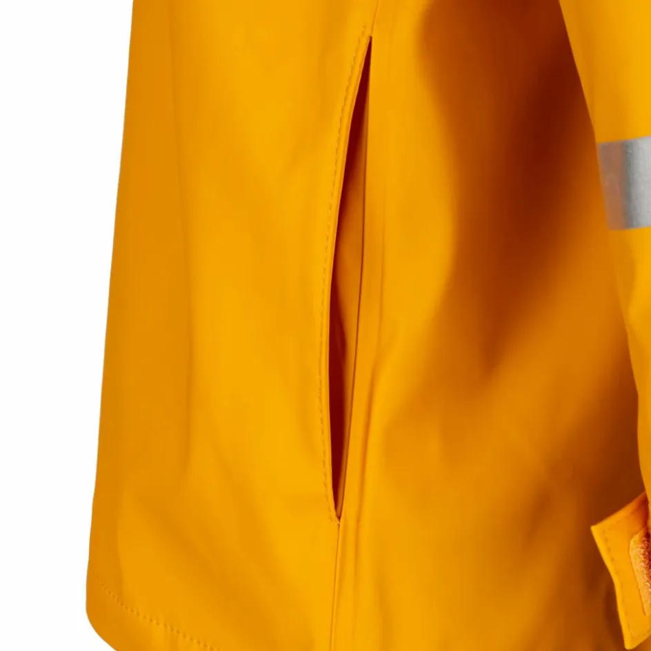 Die Kapuze lässt sich einfach abtrennen, damit sie bei trockenem Wetter nicht im Weg ist. Die Klettverschlüsse an den Ärmelbündchen können so eingestellt werden, dass kein Regen in die Ärmel rinnen kann. Praktisch auf dem Weg in die Schule oder in den Kindergarten bei schlechten Sichtverhältnissen: Die Jacke ist rundum mit reflektierenden Designelementen ausgestattet.
