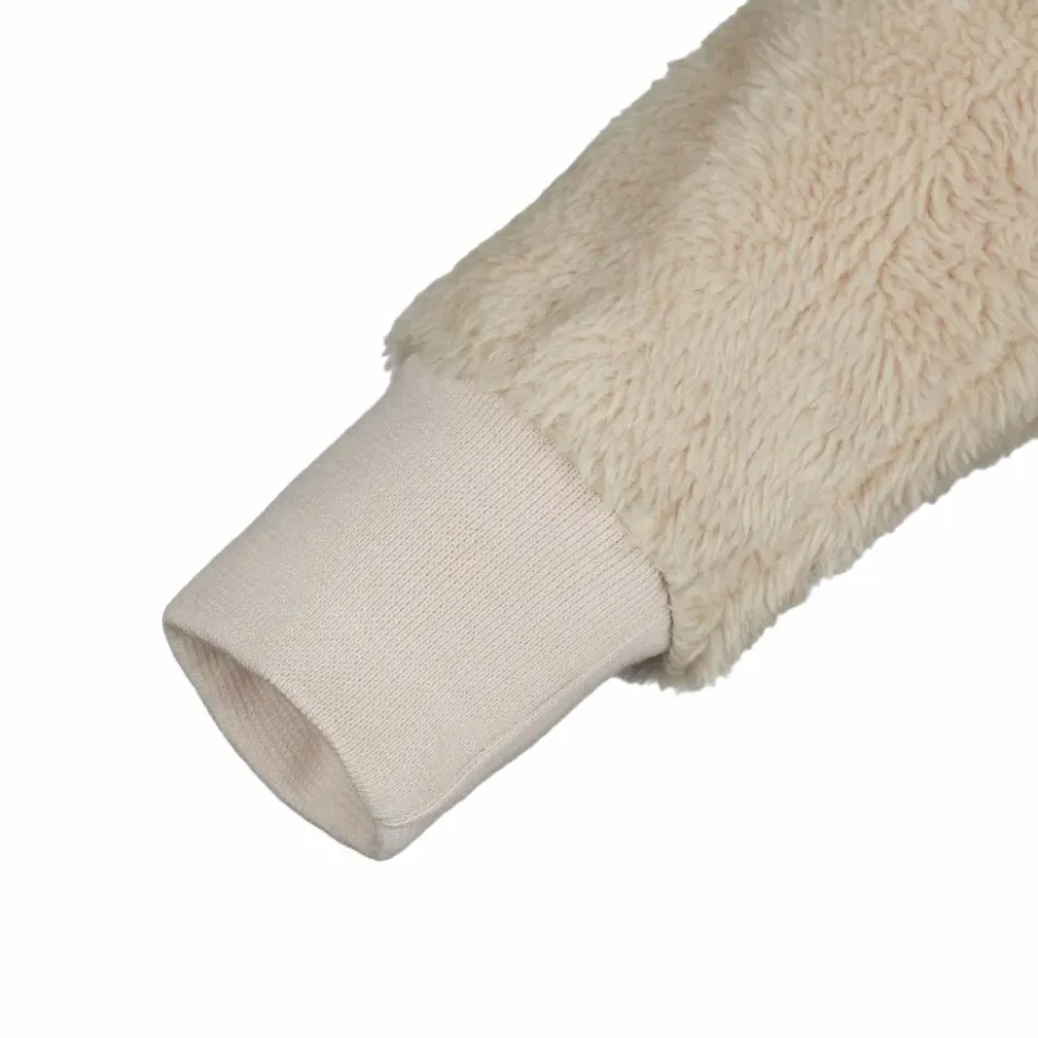 Neben dem kuscheligen Außenmaterial sorgt auch das weiche Innenmaterial für ein sanftes Tragegefühl auf der Haut. Zudem ist die Jacke angenehm warm und dank der Kapuze wird der Kopf wohlig gewärmt. Durch die Rippstrick-Bündchen an Ärmeln und Saum ist zudem für guten Sitz gesorgt. Ob als äußere Schicht bei kühlen Temperaturen oder warmer Midlayer unter einer Regenjacke – die Panda wird deinen Kindern das ganze Jahr über viel Freude bereiten.