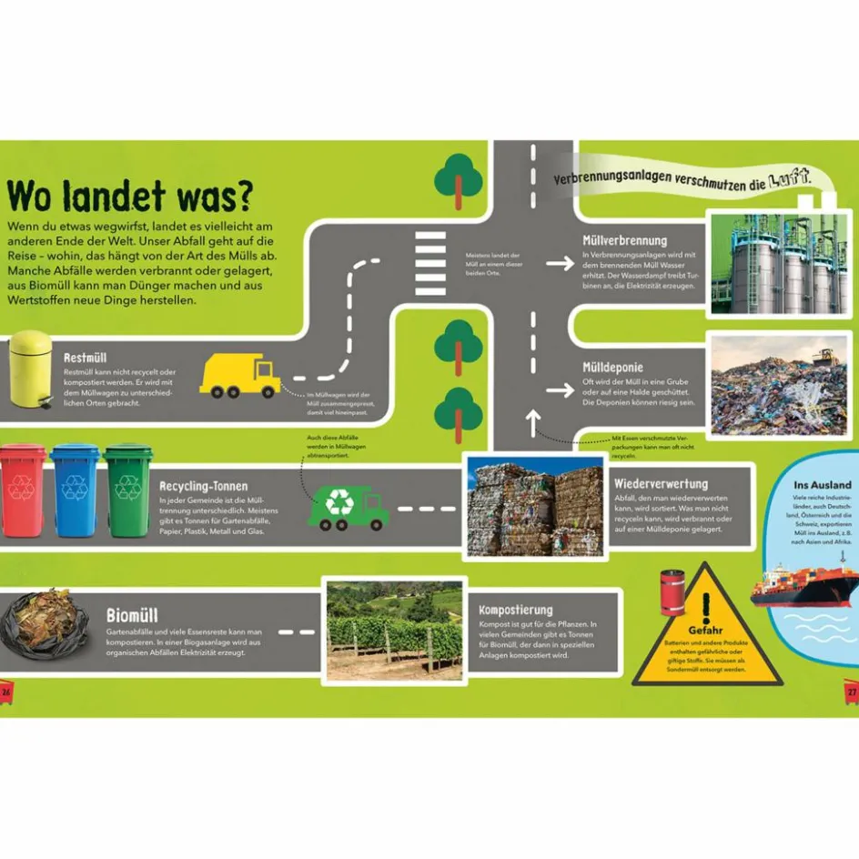 Wie viele Jahre braucht ein Plastikstrohhalm, um zu verrotten? Woraus besteht unser Haushaltsmüll? Dieses Buch klärt auf über Themen wie Klimawandel, Naturschutz und erneuerbare Energien. Zahlen und Fakten – in leicht verständlichen Infografiken aufbereitet – sowie anschauliche Abbildungen führen Kinder an wichtige Umweltthemen heran und zeigen den jungen Naturschützern, wie sie Müll vermeiden können. Mit Vorwort von NAJU, der Naturschutzjugend des NABU!