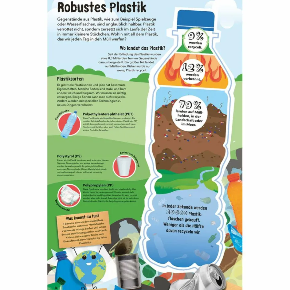 Unser Planet ertrinkt in Müll, aber es ist nicht zu spät, ihn zu retten! Von Mikroplastik und riesigen Plastikinseln in unseren Meeren über die Müllkinder in Indien und anderen Ländern bis hin zu Initiativen gegen Plastik und Tipps, wie sich der eigene Konsum reduzieren lässt – das Buch sensibilisiert Kinder für das wichtige Thema Umwelt.