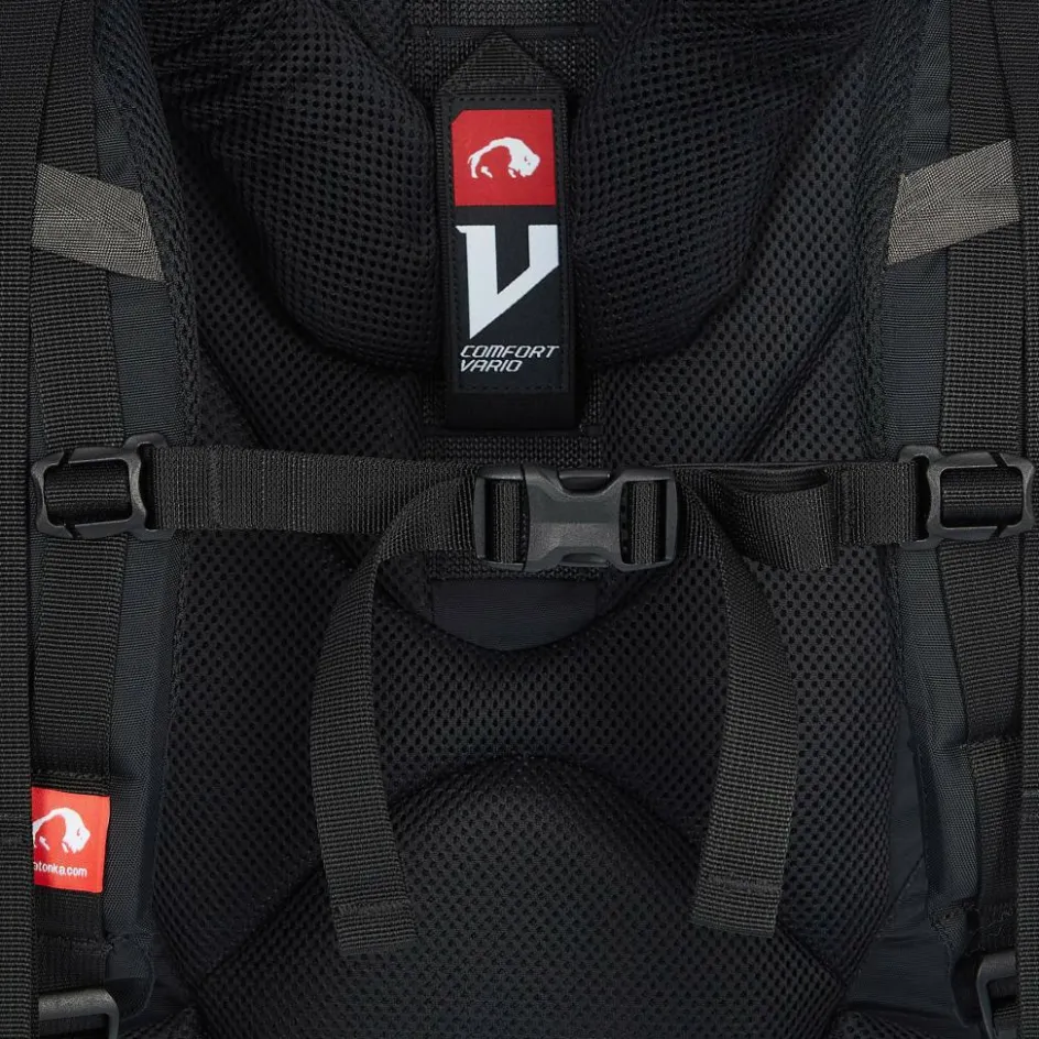 Der Rucksack ist mit dem Tragesystem V Comfort Vario ausgestattet, das äußerst flexibel ist und die Traglast optimal in den Beckenbereich ableitet. Für angenehmen Tragekomfort und Belüftung sorgen die weichen Mesh-Polsterungen von Hüftgurt, Schultergurten und Rücken. Der Kinderrucksack eignet sich nicht nur für Teenager, sondern auch für zierliche Erwachsene.