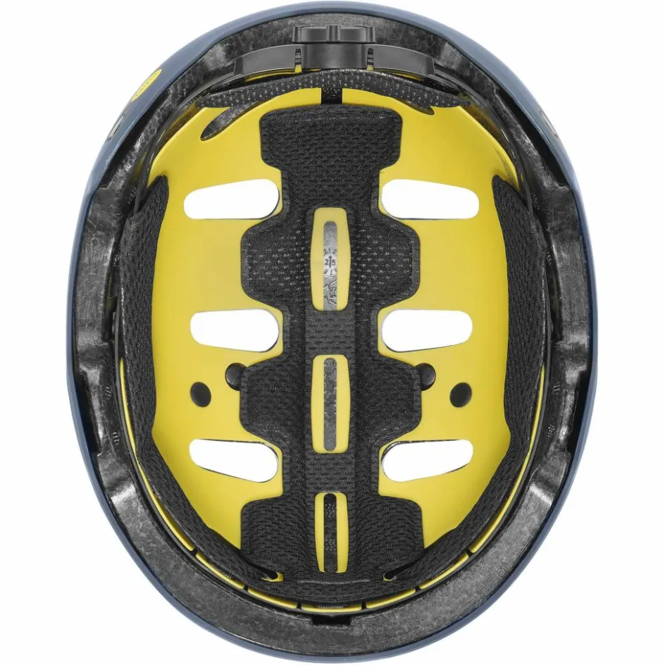 Per Uvex IAS-System ist der Fahrradhelm einfach an die Kopfgröße anzupassen. Schlau: Eine Drehmonentbegrenzung sorgt dafür, dass der Helm nicht zu eng eingestellt wird. Der Monomatic-Verschluss am Kind ist ebenso kinderleicht bedienbar. Die Gurtbänder haben ein Reflexgarn eingearbeitet, das auftreffendes Licht wirksam zurückwirft.