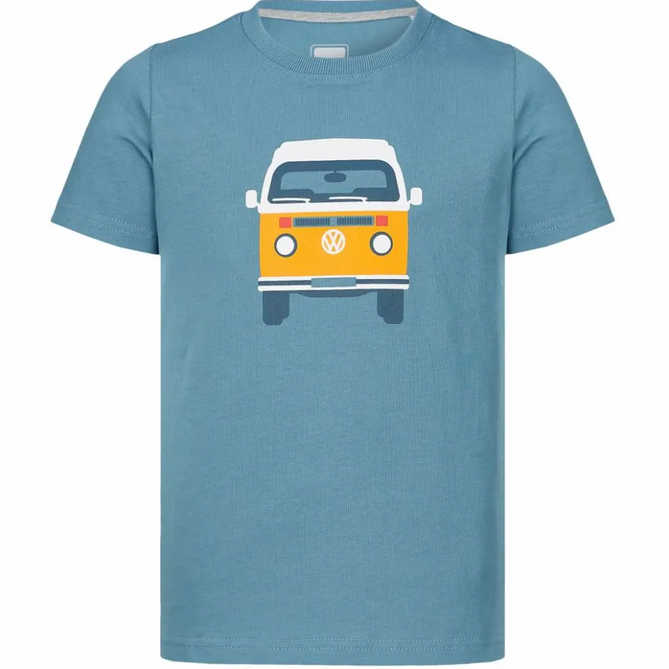 Die VW-Bulli-Linie setzt sich mit dem T2 gekonnt fort. Der lässige Bus zeigt stolz sowohl Vorder- als auch Rückseite. Sein Asphalt sind 100% Bio-Baumwolle. Zudem hatte er nur einen kurzen Anfahrtsweg in den Schrank deiner Kids, da er in Europa hergestellt wurde. Das T-Shirt kann mit jeder Menge Tragekomfort aufwarten. Der Rundhalsausschnitt verleiht ihm den letzten Schliff. So kommt ihr sicherlich durch den TÜV.