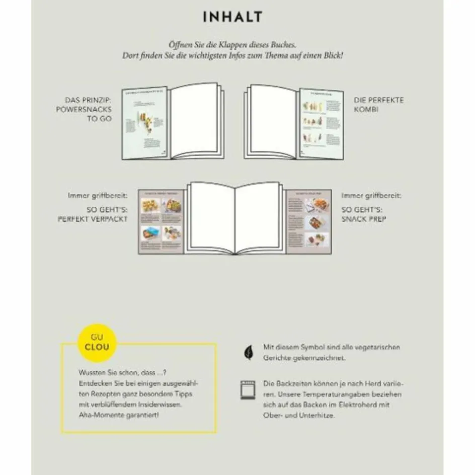 Ob auf dem Weg zum Gipfel, bei einem anstrengenden Workout im Fitnessstudio oder auf Reisen – die gesunden, kreativen Leckerbissen im GU KüchenRatgeber Powersnacks to go sind der ideale Begleiter für unterwegs. Rucksacktaugliche Sattmacher wie herzhafte Wraps und Sandwiches, oder auch süße Kraftpakete wie Bananen-Erdnuss-Rollen oder Hafer-Cookies verwandeln Ihren Rucksack im Handumdrehen in eine mobile Genussküche. Lassen Sie sich inspirieren von neuen, praktischen Snack-Ideen für unterwegs!