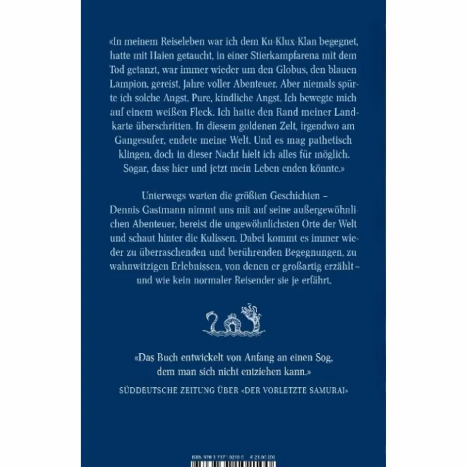 Die Welt ist groß, rund und leuchtend blau – und Dennis Gastmann hat sie erlebt. Mal in Streiflichtern, mal in aller Farbenpracht, mal wie im Fiebertraum von Andalusien bis Allahabad, von Sydney bis Swakopmund, von den tausend Lichtern Manhattans bis Madurai, der tamilischen Stadt der Tempel und Zauberer. In diesem Buch erzählt der erfahrene Reporter von seinen abenteuerlichen Reisen. Er zieht mit einem Goldsucher durch die australische Wüste, tanzt mit Finnlands bekanntestem Tangolehrer, philosophiert auf Taiwan mit einem chinesischen Dissidenten über den Preis der Freiheit.