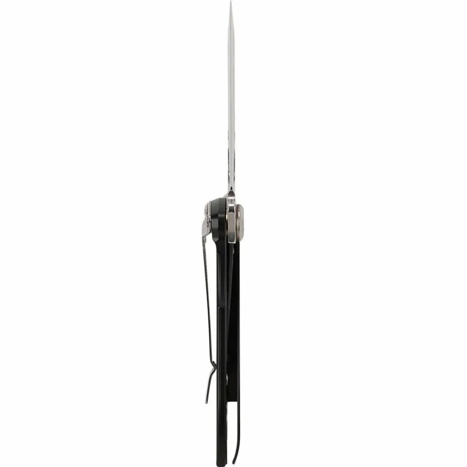 Die Griffschalen und die Klinge sind zur Gewichtsoptimierung mit Aussparungen versehen. Beim Aufklappen arretiert die Klinge durch die Liner-Lock Verriegelung, die sich nach Gebrauch leicht mit dem Daumen wieder lösen lässt.