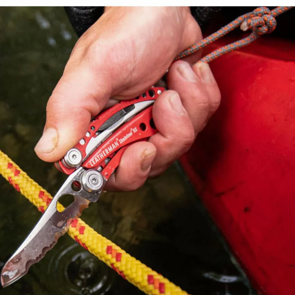 Das Leatherman Skeletool in der Ausführung für Rettungssanitäter oder Ersthelfer: Das Multitool hat eine 154CM-Wellenschliff-Klinge sowie einen Glasbrecher mit Carbidspitze.