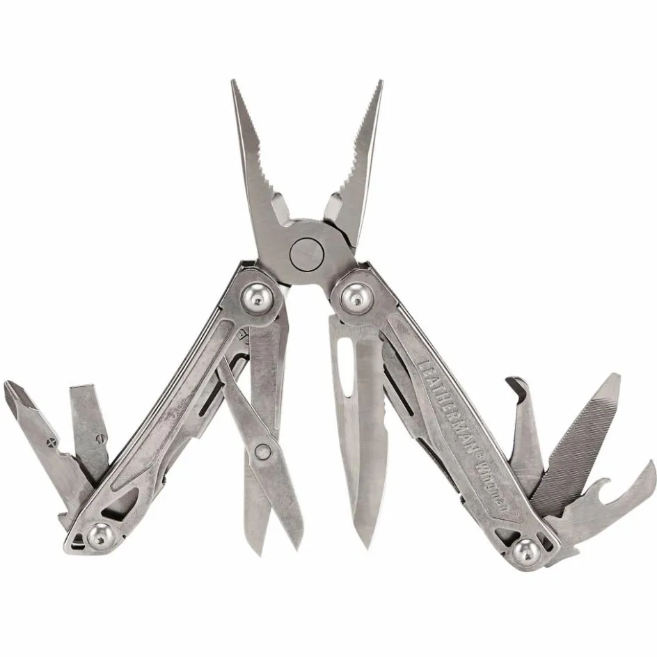 Ein integrierter Federmechanismus hält beim Wingman die Zange mit Drahtschneider im geöffneten Zustand offen. Schere und Klinge (mit partiellem Wellenschliff) lassen sich bei geschlossenem Tool mit einer Hand öffnen und arretieren mit einem Liner-Lock. Zu den weiteren Funktionen: Kapselheber / Dosenöffner, 2 Schlitzschrauben-dreher (klein und groß), 1 Kreuzschlitzschraubendreher, Feile mit Lineal (Zoll/cm), Packetöffner, Abisolierklinge,Clip und Öse am Griffende.