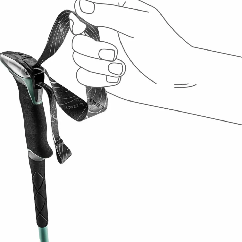 Mit dem Aergon Air hat Leki einen leichten Griff entwickelt, der dein Handgelenk beim Wandern optimal ausrichtet und auch bei langen Touren sehr angenehm ist. Bei steileren Abstiegen kannst du dich zudem bequem abstützen. Der Griffkopf ist rutschfest gummiert und leicht angewinkelt. Die verlängerte Griffzone ermöglicht dir, den Stock bei steilen Anstiegen oder Traversen schnell mal kürzer zu greifen. Auch die dünnen, weichen Handschlaufen lassen sich ganz einfach auf die passende Länge einstellen.