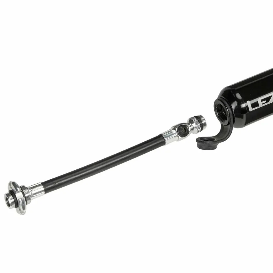 Der abnehmbare Schlauch wird direkt ans Ventil geschraubt und kann nach Benutzung wieder im Pumpengehäuse verstaut werden. Mit praktischem Druckablassventil zur einfachen Trennung des Schlauchs. (Bei Autoventilen ist auch ein Reifendruckablassmöglich.) Max. 90 Psi/6,2 bar.