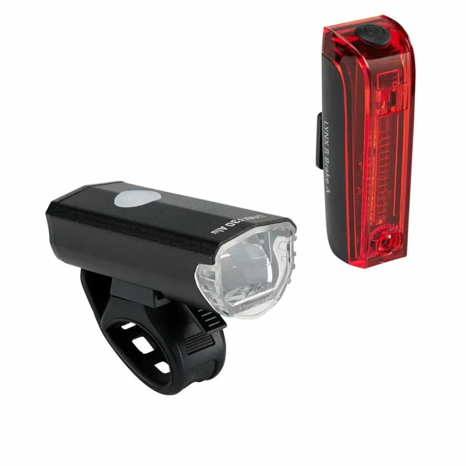 Praktisches Set mit Abschaltautomatik bei Front- und Rücklicht. Der Frontscheinwerfer kommt mit einem robusten und wertigen Aluminiumgehäuse. Das Rücklicht hat außerdem eine Bremslichtfunktion.