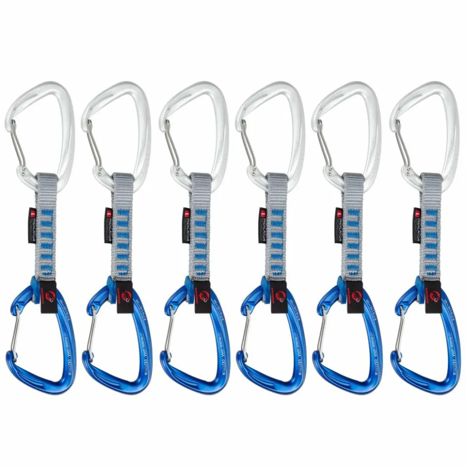 Diese sechs Exen bestehen aus je zwei Crag Karabinern mit Drahtschnappern und einer robusten, 10 cm langen Polyester-Schlinge. Sie sind vielseitig einsetzbar, ob im Sommer oder bei Schnee und Eis.