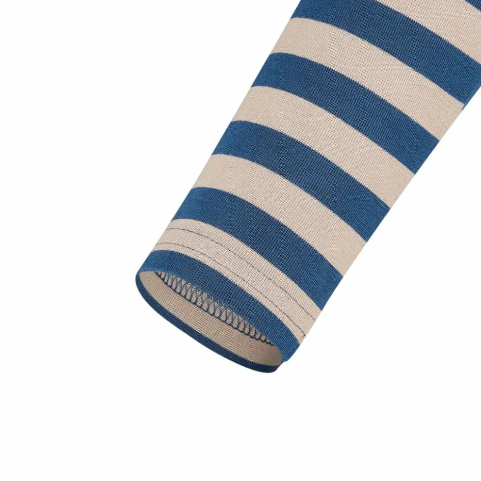 Durch den hochwertigen Materialmix liegt das Shirt herrlich sanft auf der Haut. Neben der Baumwolle ist auch die Viskose natürlichen Ursprungs. Sie besteht aus einem Bambus-Zellstoff und besitzt einen leicht kühlenden Effekt. Damit punktet das schick gestreifte Langarmshirt mit seinem hohen Anteil an umweltfreundlichen Materialien. Während das im Gewebe ebenfalls enthaltene Elasthan dafür sorgt, dass das Shirt auch die wildesten Bewegungen mitmacht. Der integrierte UV-Schutz von 50+ hält UV-Strahlen von deinen Kindern fern. So können die kleinen Entdecker:inne ganz unbeschwert die Natur erkunden.
