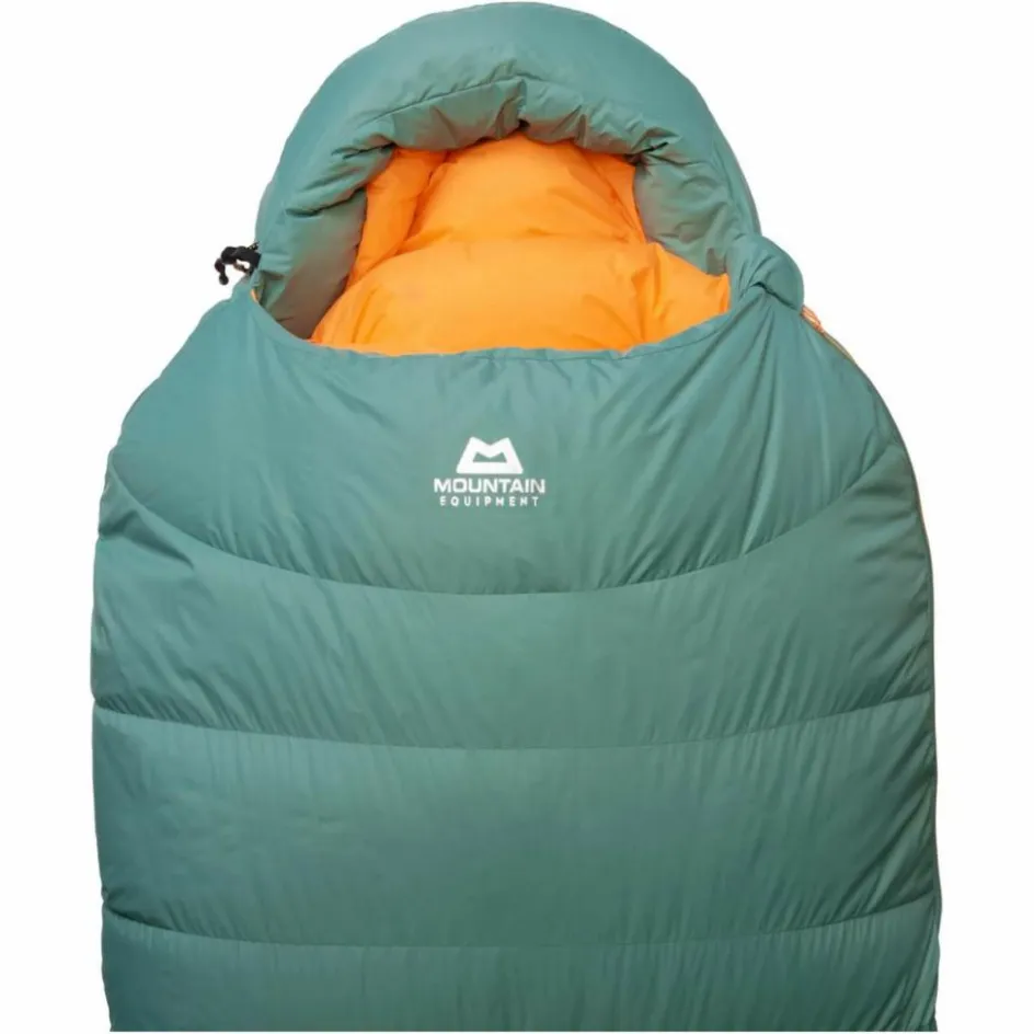 Mountain Equipments bewährte EXL Technologie trägt zu einer höheren Wärmeleistung bei, da sich das Innenmaterial des Schlafsacks näher an den Körper anlegt und somit unnötige Lufträume reduziert werden. Gleichzeitig erhält die Daune mehr Platz für maximalen Loft. Der lange Reißverschluss mit Gemini System verhindert Wärmeverluste in diesem kritischen Bereich und ist verstärkt, um ein Einklemmen des Zippers zu verhindern. Der flache, magnetische Lode Lock Verschluss und die Kordelzüge am Wärmekragen lassen sich auch in der Nacht gut bedienen.